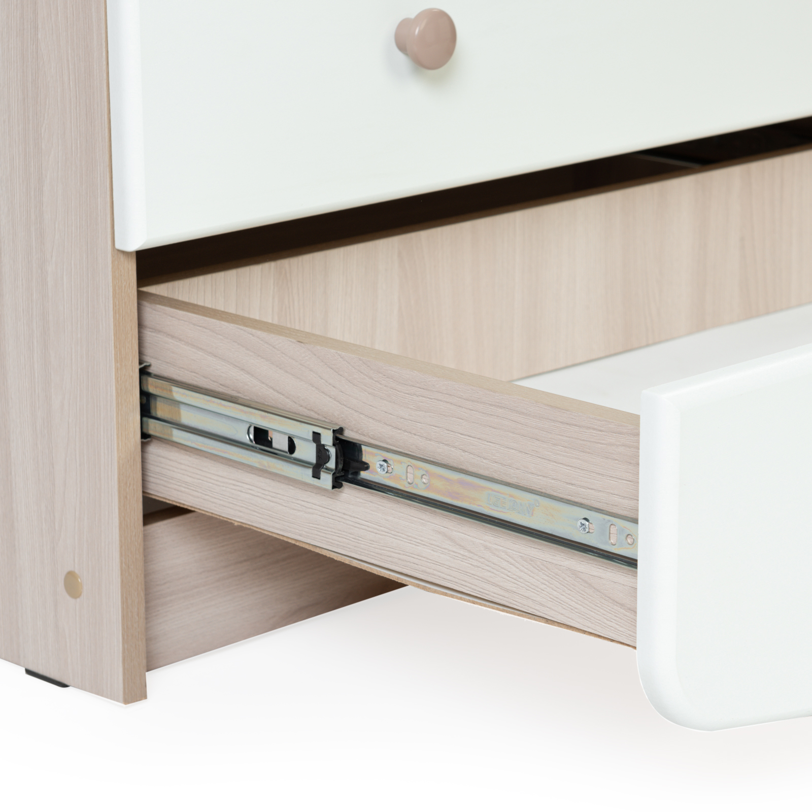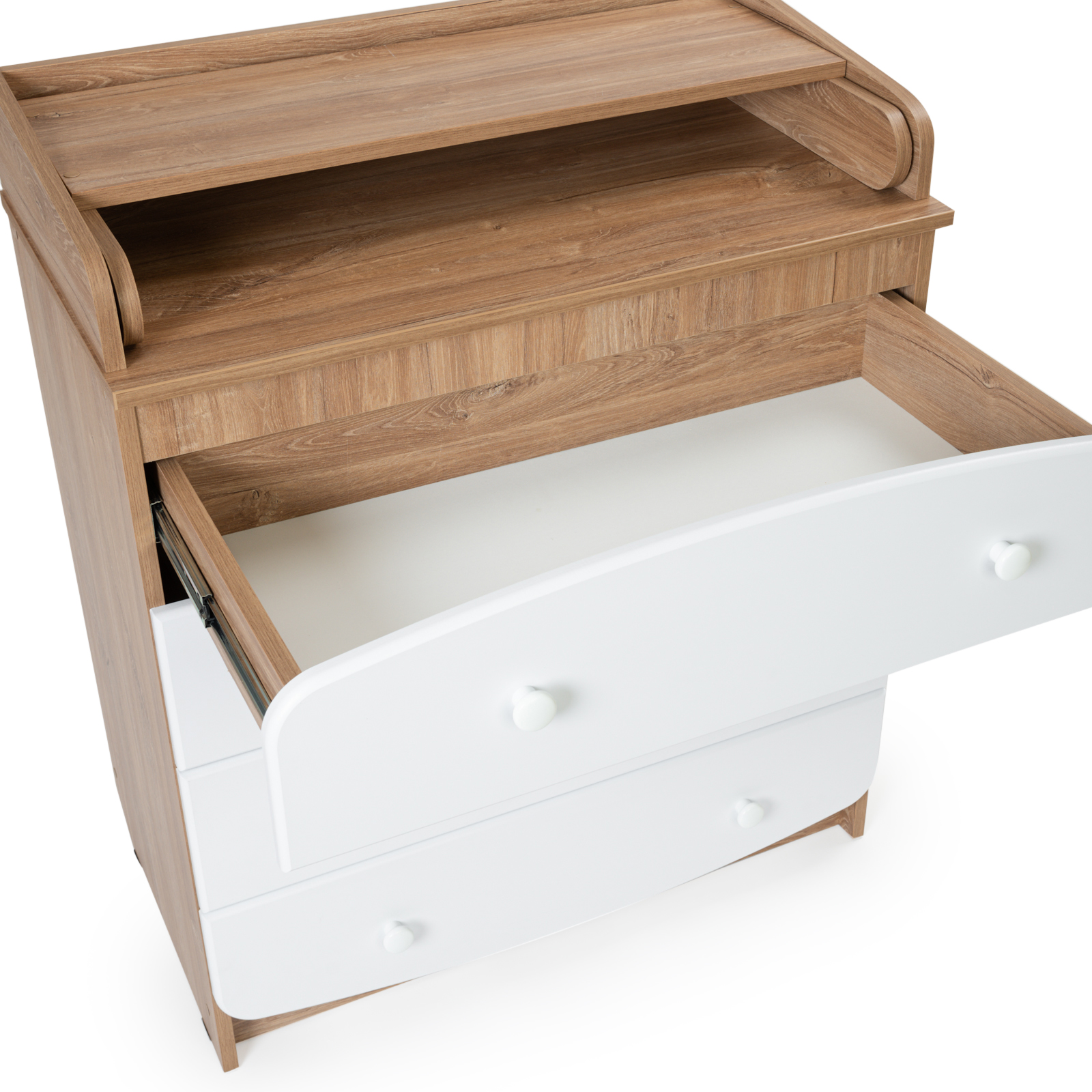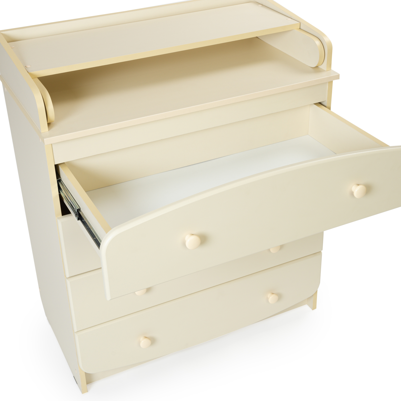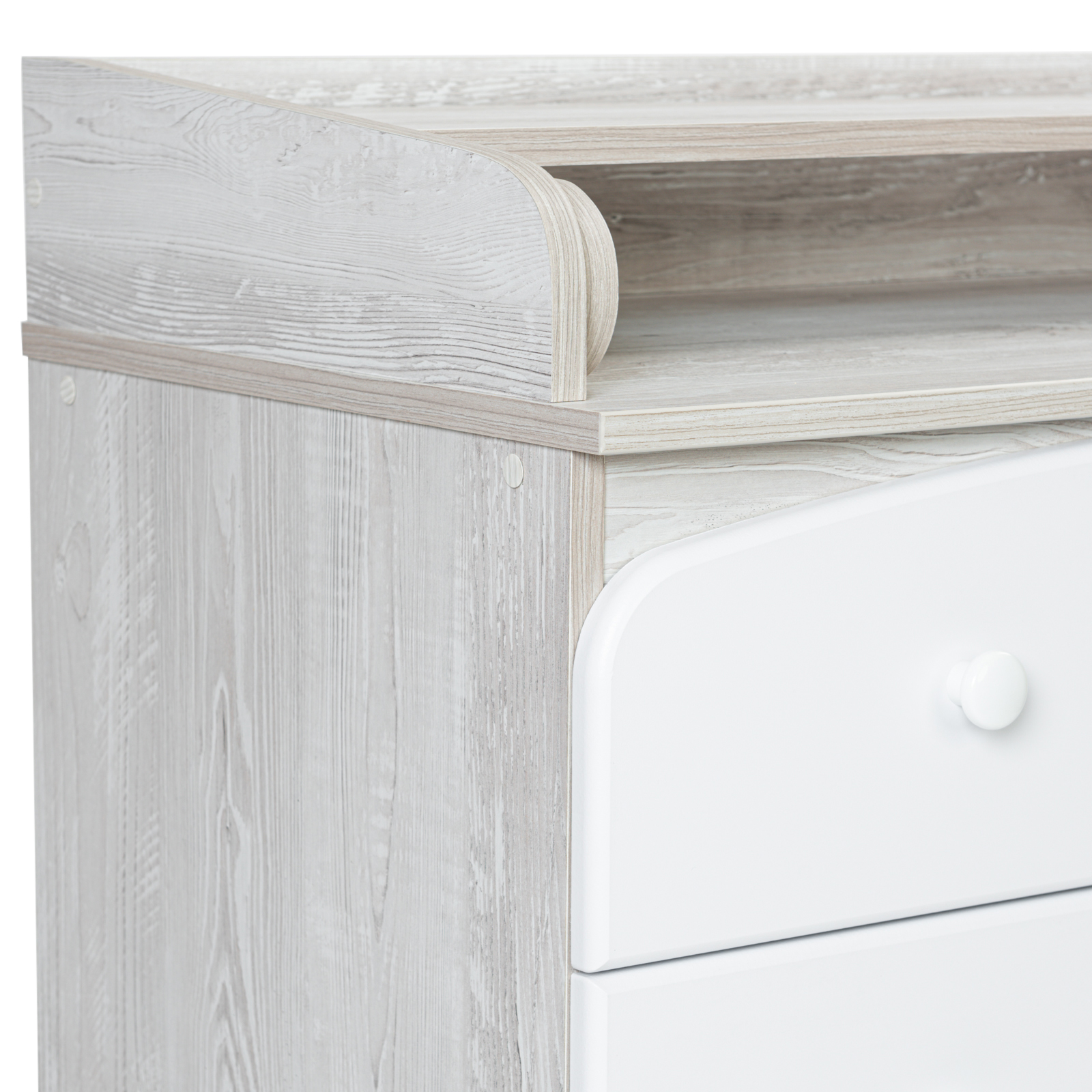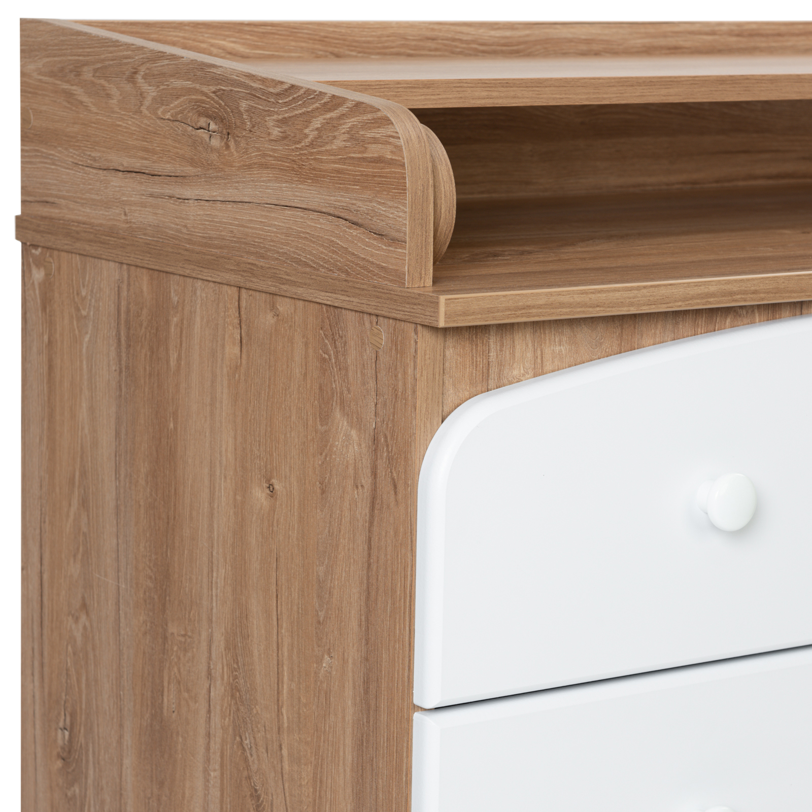Детский комод BEBIZARO ROOMY (Бебизаро Руми) - незаменимый предмет в любом доме, где есть ребенок. 4 вместительных ящика помогут организовать порядок в детских вещах, хранить все "под рукой". Большой пеленальный столик поможет одевать и переодевать ребенка, проводить все необходимые гигиенические процедуры на удобной для вас высоте. Когда столик не нужен, он превращается в 2 дополнительные полочки для нужных вещей. Элегантный дизайн, большой выбор расцветок и фактур помогут подобрать идеальный комод в детскую комнату.
