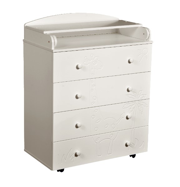 Детский комод с пеленальным столиком Антел Ульяна 9 Жираф 800/4 МДФ – удобный комод с вместительными 4 ящиками и роликовыми направляющими для плавного открытия/закрытия. Комод оснащен складным столиком, который при необходимости раскладывается, а в обычное время не занимает много места и не мешается. Комод украшен детским рисунком с жирафиком, который прекрасно впишется в детский интерьер. Комод имеет удобные размеры, прочный и надежный.