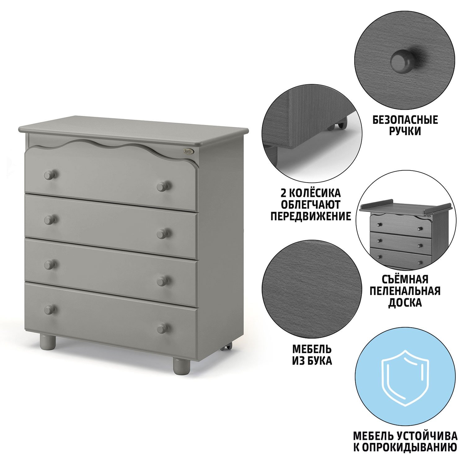 Пеленальный комод Nuovita Affetto (нуовито аффетто) - красивый дизайнерский комод из бука с 4-мя вместительными ящиками. Идеально подойдет в любую детскую комнату. За счет съемного пеленального столика станет незаменимым предметом при одевании или пеленании малыша.