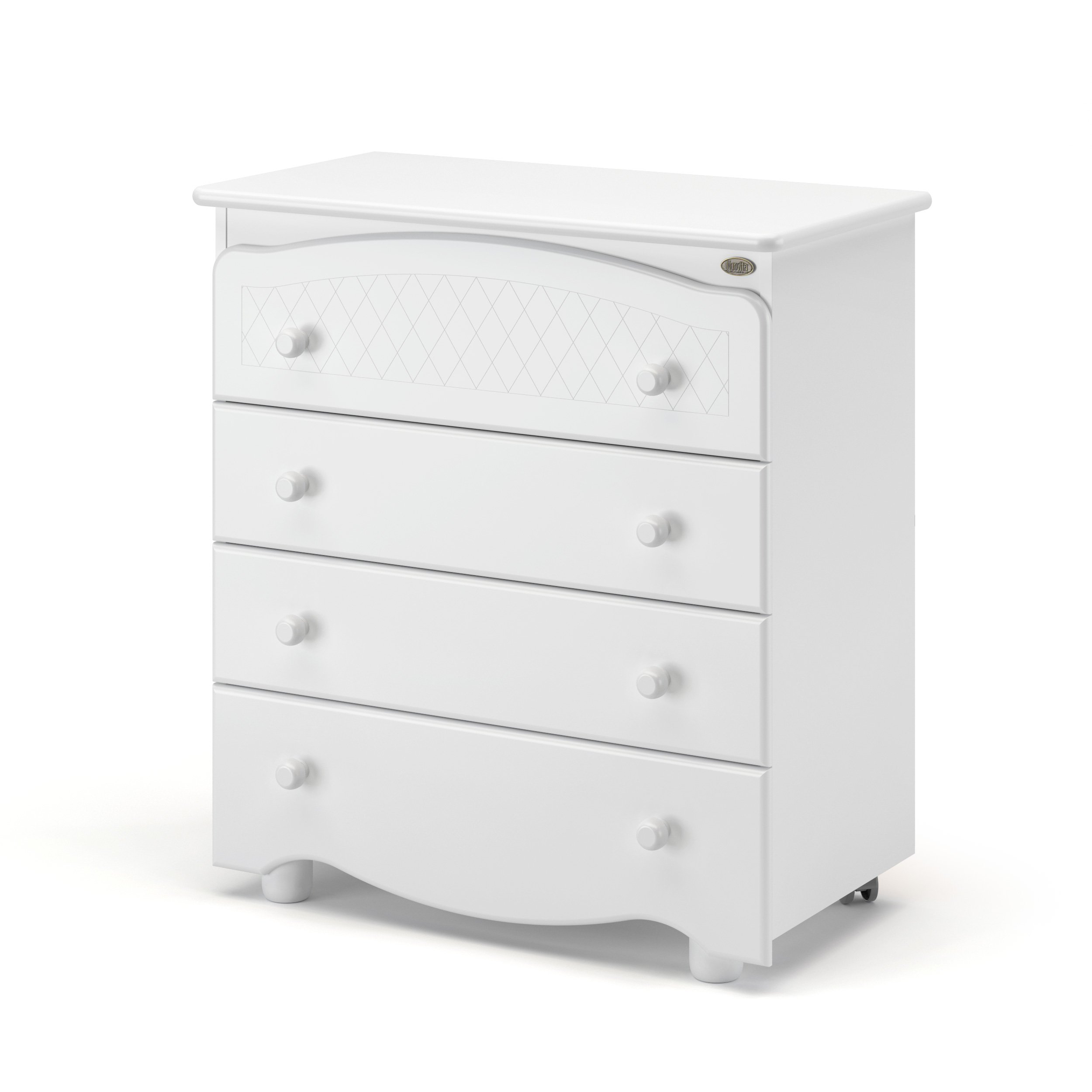 Комод Nuovita Tempi (Нуовита Темпи) - красивый и удобный комод со съемной пеленальной поверхностью. За счет плавных линий, а так же необычных фигурных ящиков, комод смотрится очень элегантно.