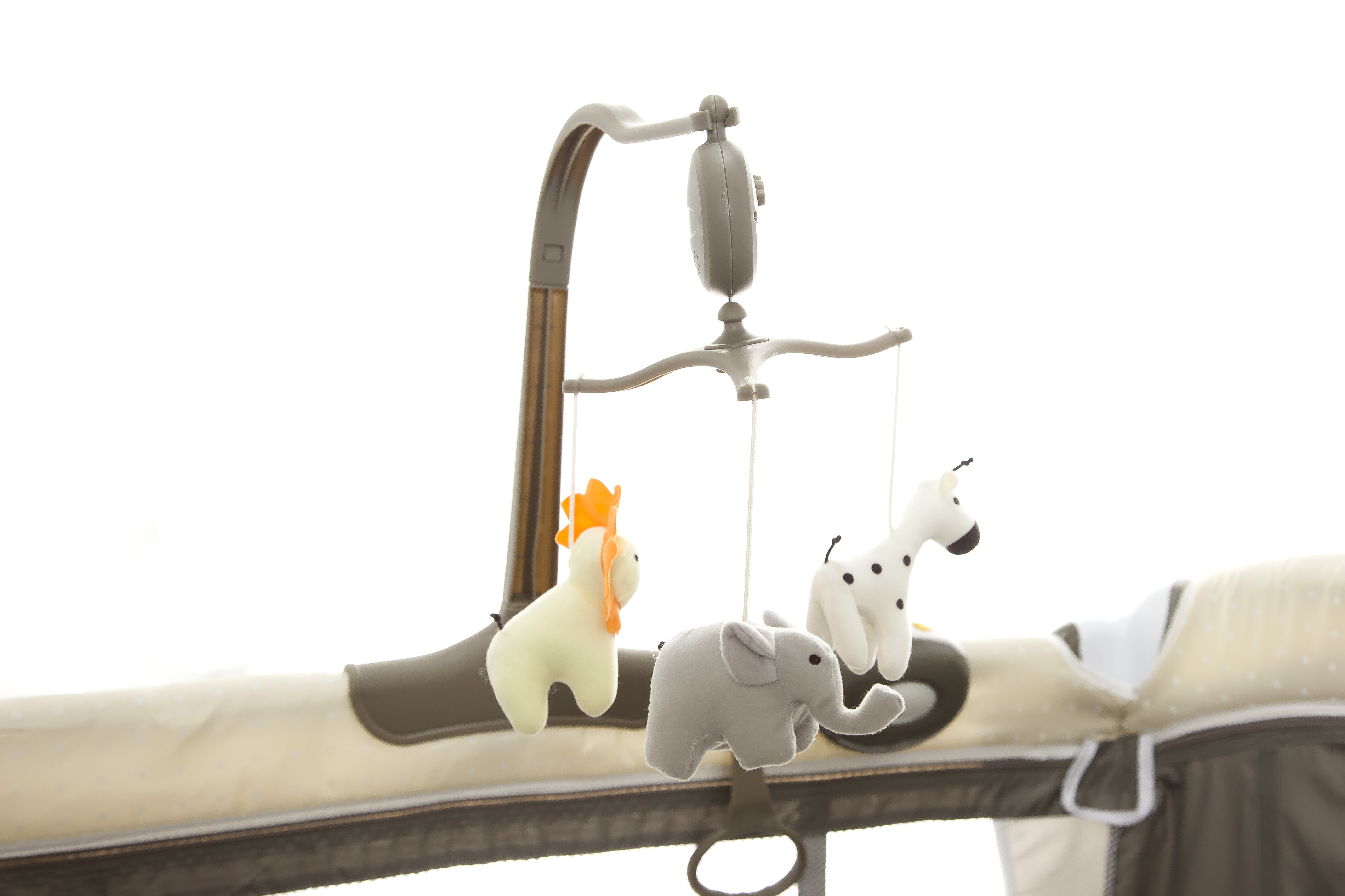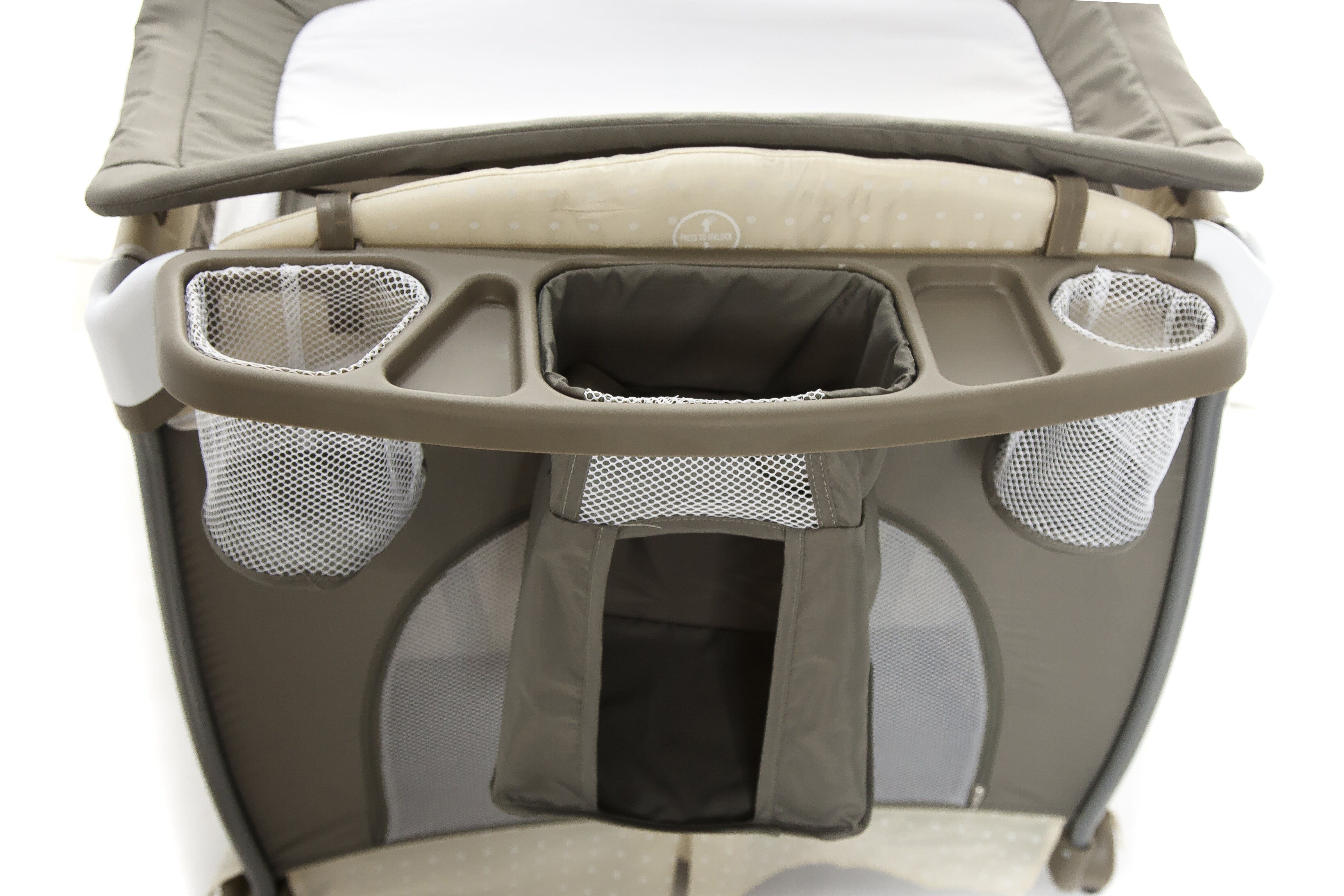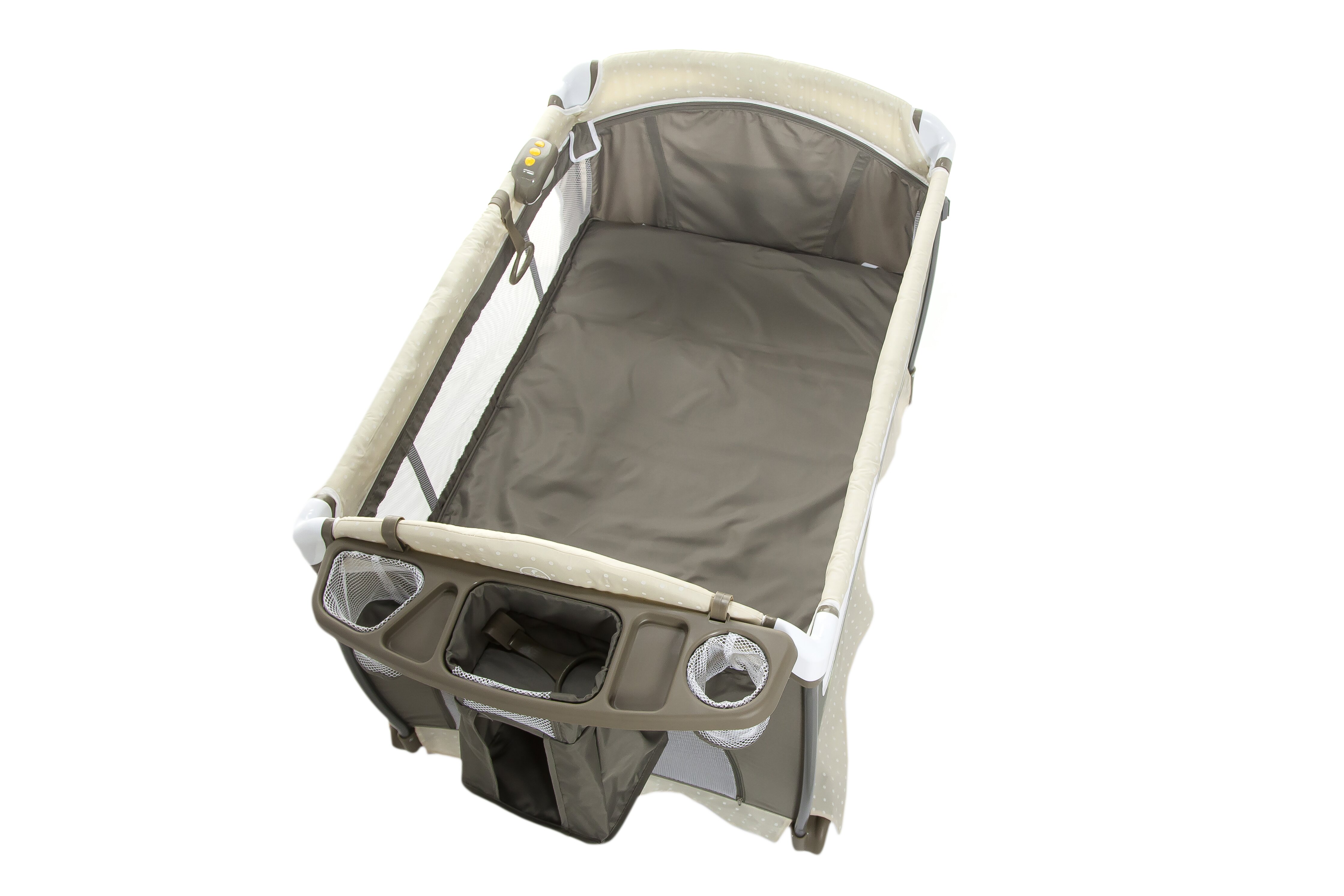 В данной модели прекрасно сочетается качество, стиль и приемлемая цена. При покупке манежа у вас будет полноценная кровать с двумя уровнями ложа в зависимости от возраста ребенка. Музыкальная дуга с игрушками, которую легко снять. Ночник и виброукачивание, которые помогут маме уложить маленького непоседу спать. Удобный пеленальный столик надежно крепится на кроватку, имеет внутренний ремень безопасности, и легко откидывается при ненадобности. Большой и роскошный балдахин создаст приятную и уютную атмосферу в детской. Органайзер для самых нужных вещей очень пригодится маме при пеленании или переодевании ребенка. А когда ребенок подрастет, то он сможет безопасно играть в своем манеже с лазом, пока мама занимается делами.