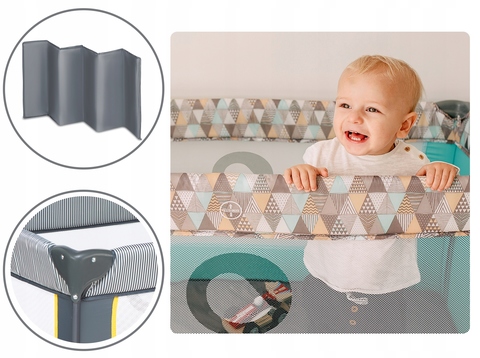 - Защитная сумка: Защищает детский манеж от загрязнений. Практичная ручка для удобной переноски.