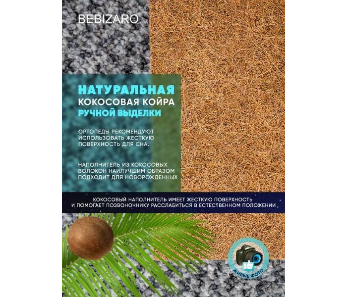 - Латексированная кокосовая койра (10 мм) - создает максимальный ортопедический эффект и рекомендуется для новорожденных.