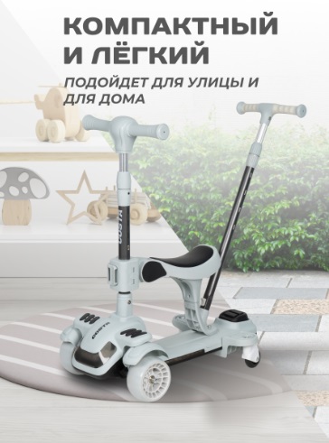 - Самокат с сидением для ребенка от 1 годика с родительской ручкой
