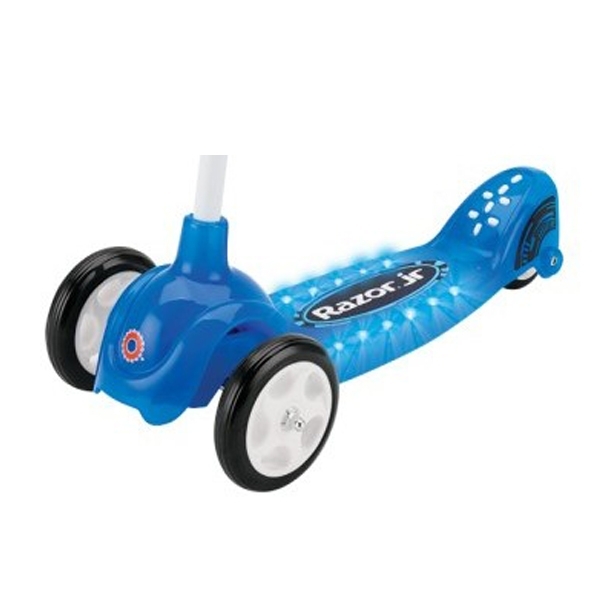 Детский самокат Razor Lil Tek (Рейзер лил тек) - безопасный самокат для ребенка от 2-3 лет со светящейся платформой. Самокат управляется наклоном ручки вправо и влево, угол поворота 19,5 градусов, что даёт самокату хорошую управляемость и улучшенную отзывчивость. Большая и удобная платформа для ног. В платформе предусмотрено 12 пульсирующих светодиодных лампочек. Руль имеет мягкие противоскользящие накладки и не регулируется по высоте. Невероятно красивый, яркий, сверкающий самокат сделают каждую прогулку незабываемой.