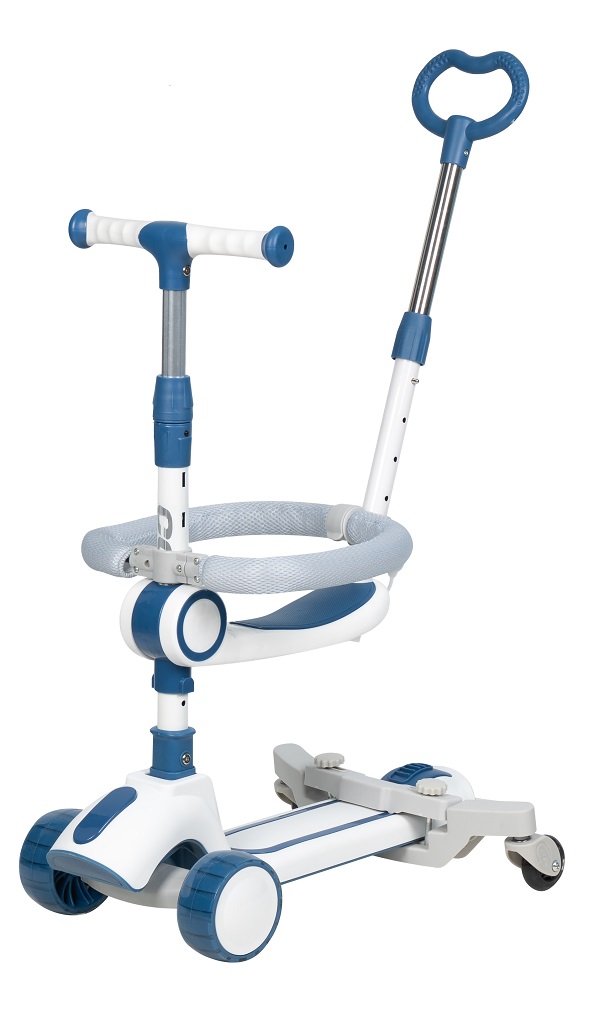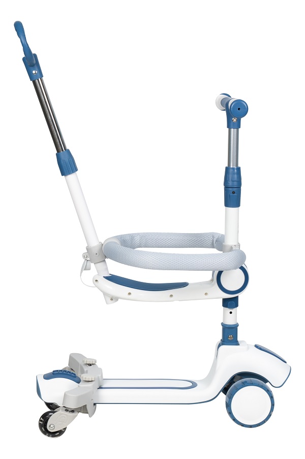 Самокат-трансформер 3 в 1 оборудован надежным бампером безопасности, родительской ручкой и удобным съёмным сиденьем. По мере взросления ребенка дополнительные элементы снимаются и ребёнок может научится кататься сидя, а затем легко перейдёт на стандартное катание на самокате в 3-6 лет.