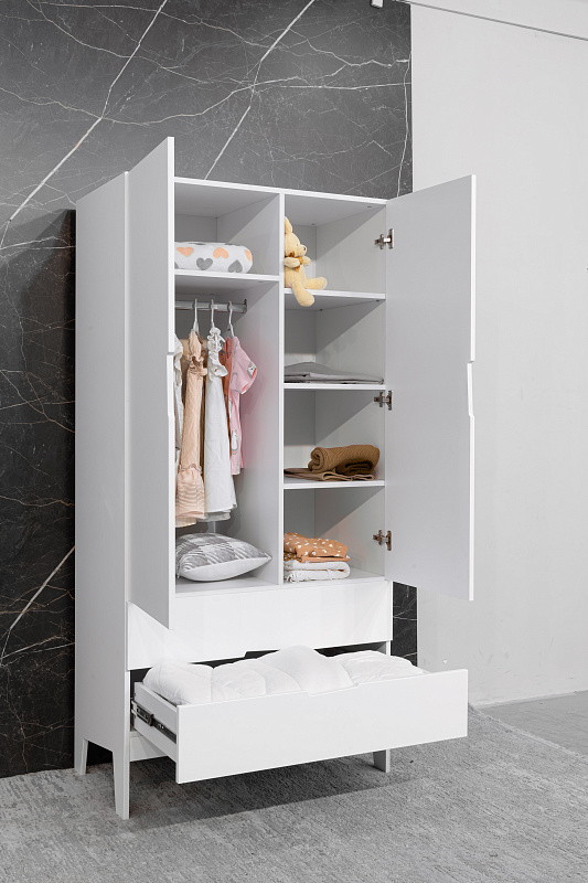 Детский шкаф Antemi Fiora (Антеми Фиора) - вместительный, практичный детский шкаф в скандинавском стиле. Простой, лаконичный дизайн позволит идеально вписать шкаф в любой интерьер. Внутри шкафа Вас ждет большое пространство с ящиками, выдвижными полками и штангой для одежды.