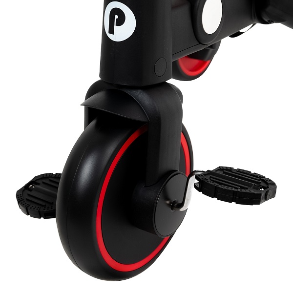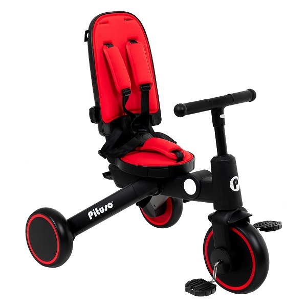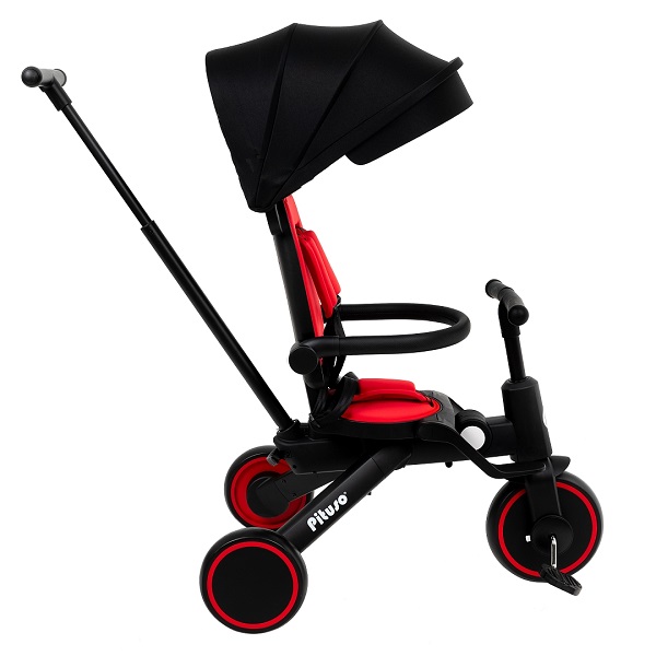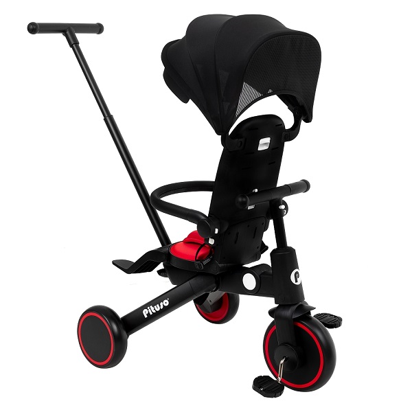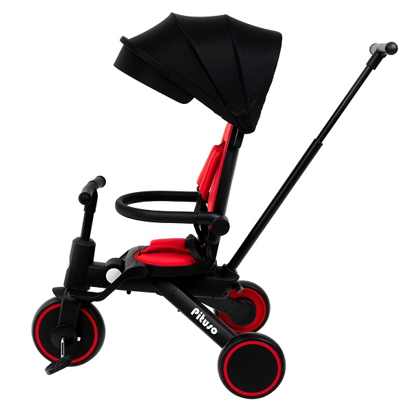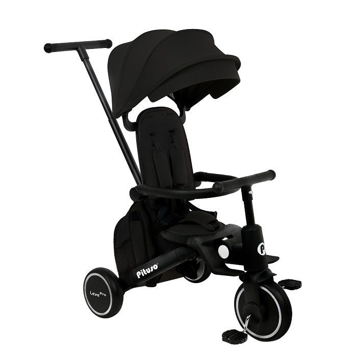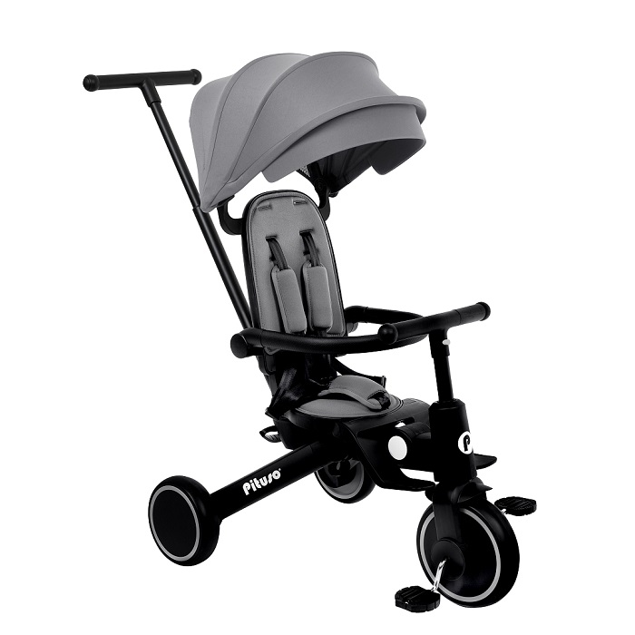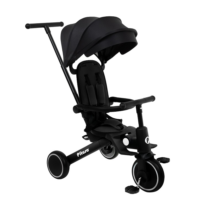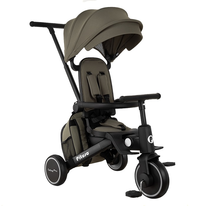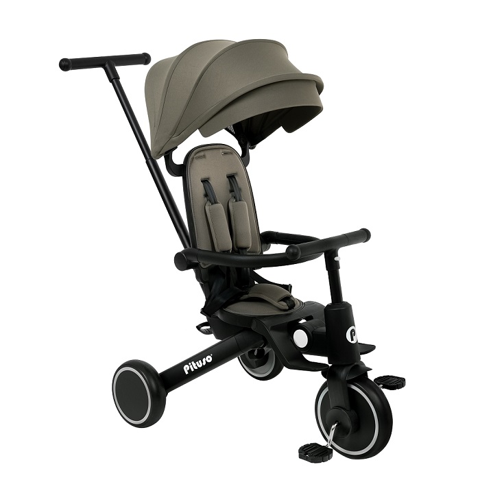 - Трехколесный велосипед для уже подросшего ребенка. Ребенок может самостоятельно крутит педали велосипеда, иногда ему могут помогать родители. Защитные ремешки и бампер снимаются, чтобы ребенок сам залазил/ вылазил из велосипеда. Капюшон убирается, чтобы сделать велосипед легче и удобнее.