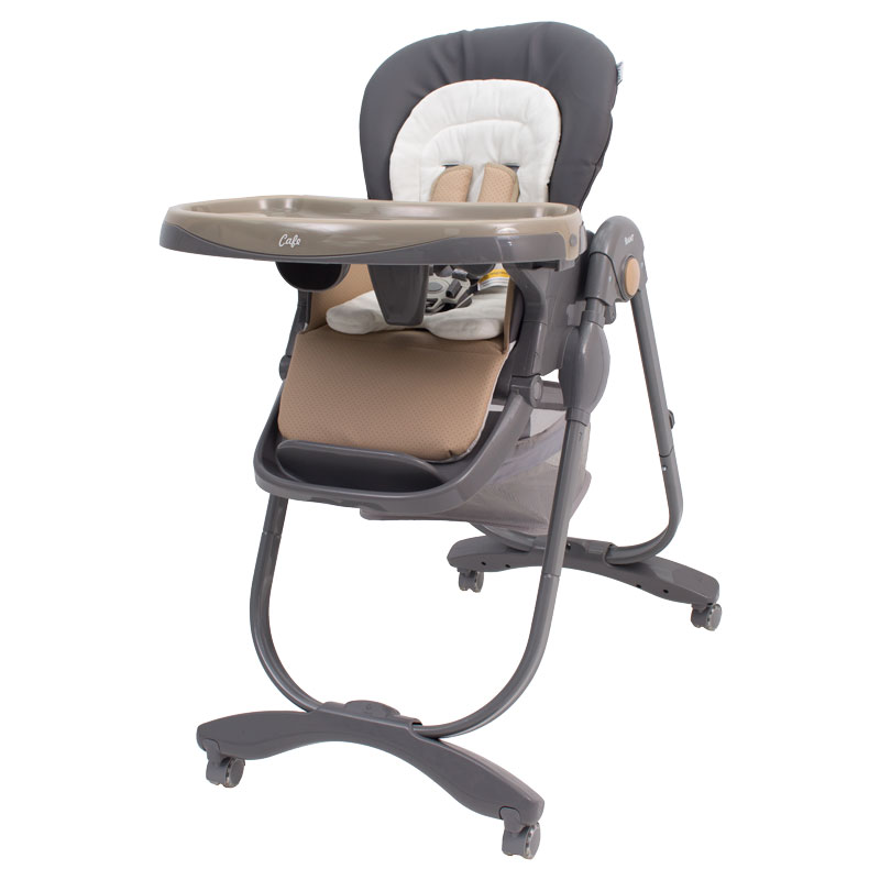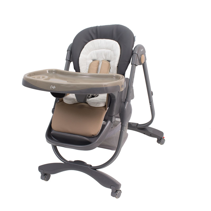 Детский стул для кормления Rant Cafe (Рант Кафе) - предназначен для детей от 6 месяцев. Модель выполнена в темных тонах с двухцветной обивкой из эко кожи и мягким матрасиком из натуральных тканей. Такой стул отлично подойдет к любому интерьеру, удобен в эксплуатации и легко моется при необходимости. Спинка регулируется в нескольких положениях от полностью сидячего до почти горизонтального положения. Для комфортного отдыха подножка регулируется по высоте. Безопасность ребенка осуществляется с помощью надежной конструкции стульчика, 5-ти точечными ремнями безопасности и разделителем между ножек от сползания. Столик регулируется по глубине, легко снимается для мойки, при необходимости может крепиться на задних ножках. Стульчик оснащен удобной системой сложения, корзинкой для вещей и силиконовыми колесиками, которые не портят пол.