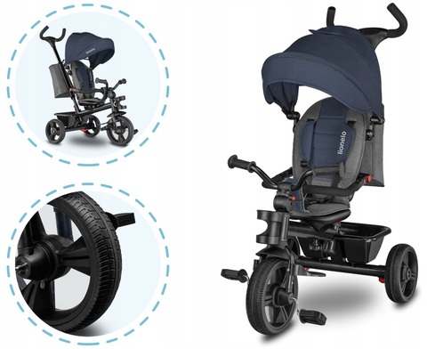 Детский велосипед Lionelo LO-Haari (Лионело Ло Хари) - вездеходный велосипед на больших резиновых, бескамерных колесах для ребенка от 18 месяцев до 5 лет. Колеса с большими протекторами обеспечивают прекрасное сцепление с дорогой и обеспечат приятную прогулку с ребенком. При этом колеса ненадувные, не требуют подкачки и не проколятся. У велосипеда два положения сидения: по ходу и против хода движения, что удобно для маленьких детей. Велосипед легко управляется, имеет холостой ход, и достаточно компактен для транспортировки. Для нужных вещей на прогулке предусмотрены: небольшая сумочка на родительской ручке и небольшая корзина для покупок.