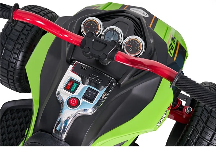 Фары включаются отдельной кнопкой. Встроенные мелодии, MP3-плеер, USB, подсветка приборной панели. Есть регулировка уровня громкости.