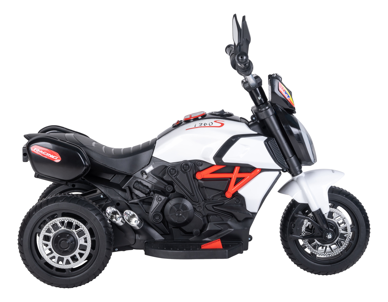 Детский трицикл Farfello JJ202 (Фарфелло) - для маленьких гонщиков! Яркий дизайн, световые эффекты и веселые мелодии надолго увлекут малыша. Компактные габариты мотоцикла позволяют использовать его в квартире, а небольшой вес обеспечивает возможность выноса на улицу.