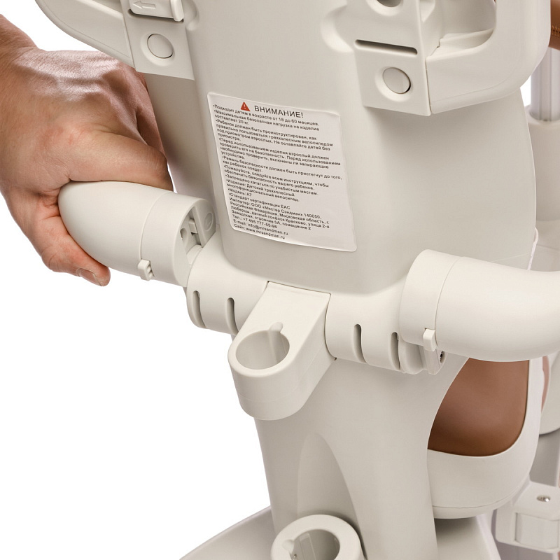 - Благодаря различным вариантам использования, ребенок постепенно будет учиться ездить на велосипеде самостоятельно. По мере необходимости ненужные аксессуары можно снимать, пока велосипед не превратится в модель без спинки и педалями.