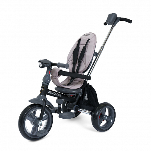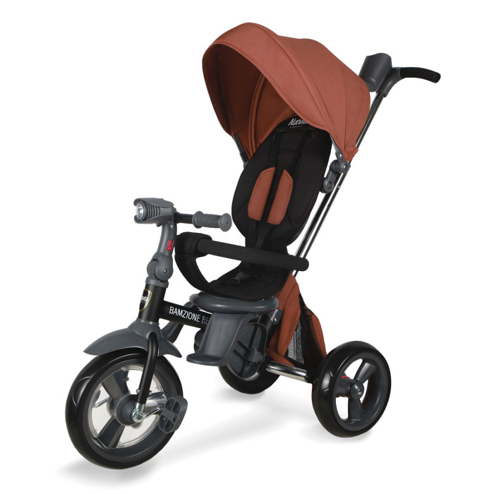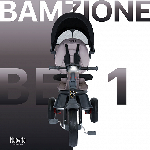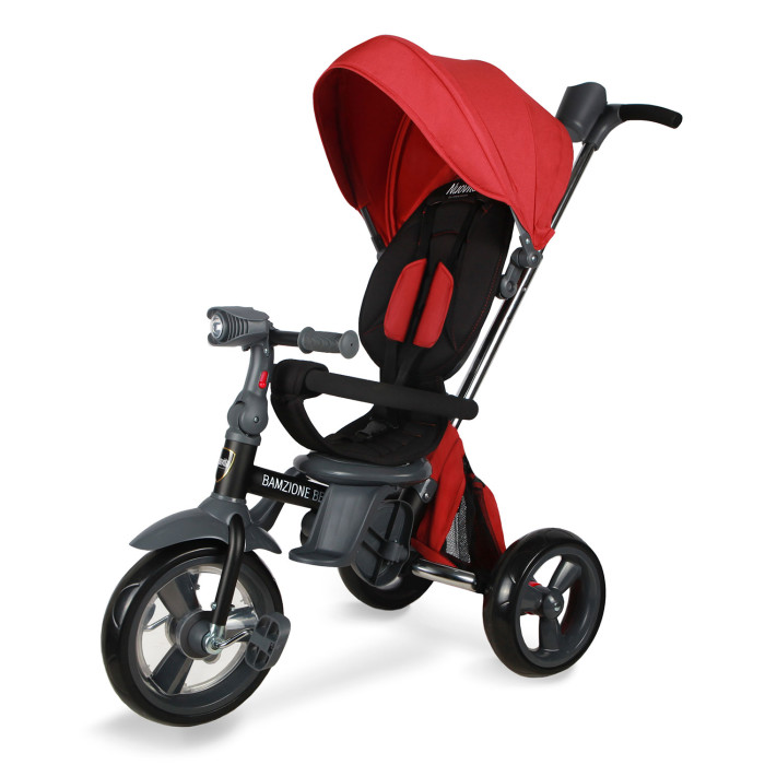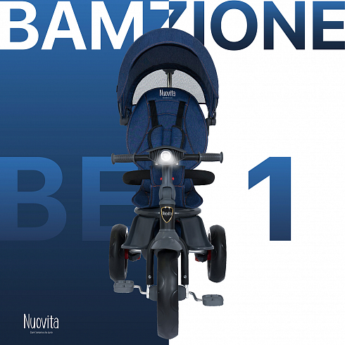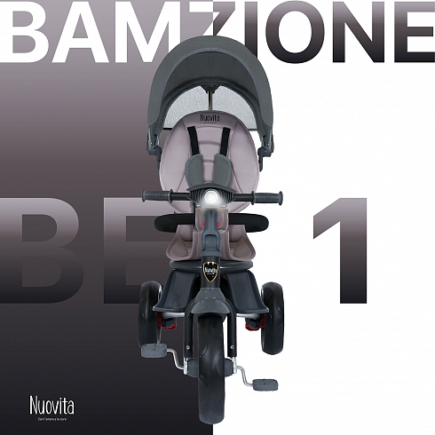 Трёхколёсный велосипед Nuovita Bamzione BE1 (Нуовита Бамзионе би1)- яркий представить качественного и удобного велосипеда для ребенка от 1 года. В Bamzione BE1 ребенок будет чувствовать себя так же комфортно и безопасно как в коляске, но это будет более увлекательная и интересная прогулка. Малыш может сам управлять транспортом, нажимать на музыкальную панель, включать переднюю фару. У ребенка будет больший обзор, чем в коляске, за счет чего ему обязательно понравится такой вариант прогулки. Если ребенок во время прогулки устанет, спинку можно перевести в положение для отдыха и даже развернуть сидение к маме. Большой многосекционный капюшон закроет от солнца и осадков. По мере роста ребенка велосипед меняется, что позволит пользоваться моделью до примерно 5 лет. Ход велосипеда очень мягкий и бесшумный , а управление очень удобное. Для удобства хранения и транспортировки модель складывается.