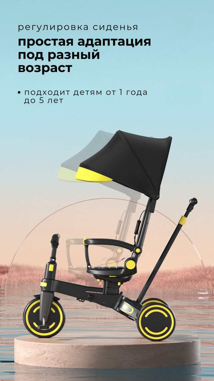 - Регулировка сиденья: простая адаптация под разный рост, подходит детям от 1 года до 5 лет