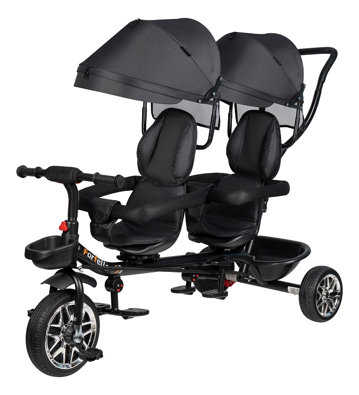 Детский велосипед Farfello PL-01 (Фарфелло) - прекрасный вариант детского транспорта для двоих детей от 10-12 месяцев до 25 кг на каждое сидение. Велосипед - паровозик достаточно компактен и весит всего 10 кг. Переднее сидение можно поворачивать, что позволит во время прогулки детям общаться.