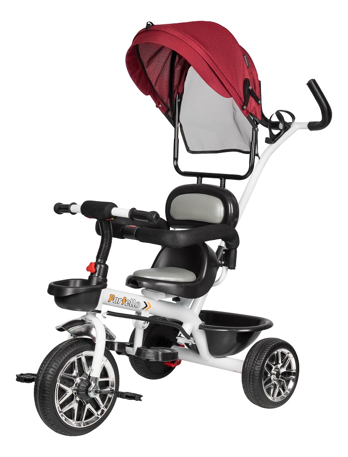 Детский велосипед Farfello PLK-054 (Фарфелло) - легкий, практичный, детский велосипед с самыми необходимыми функциями. Сидение с мягкими вставками из эко кожи можно подвинуть ближе к рулю. Для ножек ребенка, пока они не достают до педалей, есть складная подножка. По мере роста ребенка родительскую ручку, капюшон и бампер безопасности можно будет снять и использовать "облегченный" велосипед для самостоятельных поездок ребенка.
