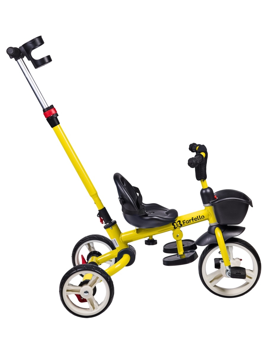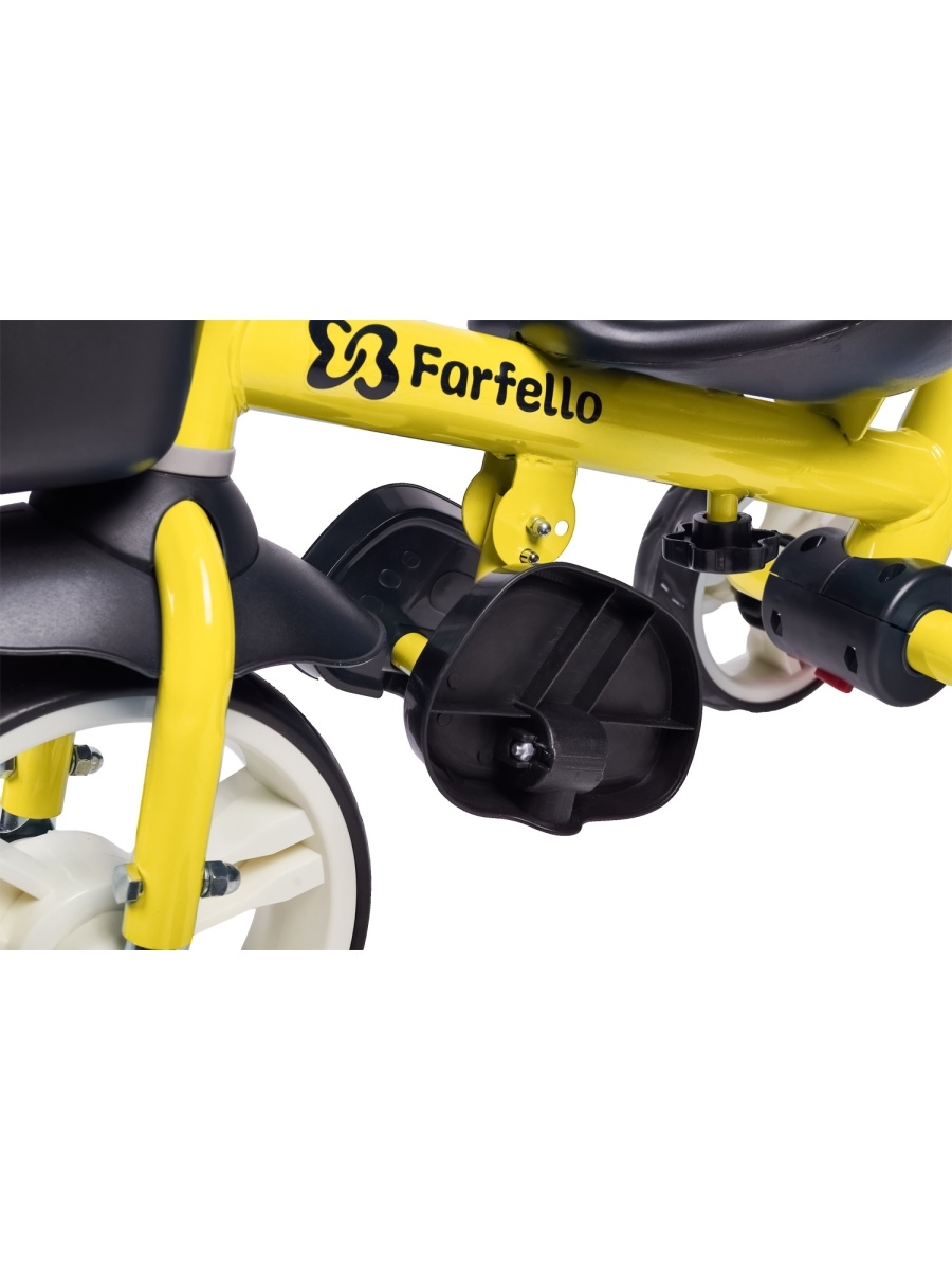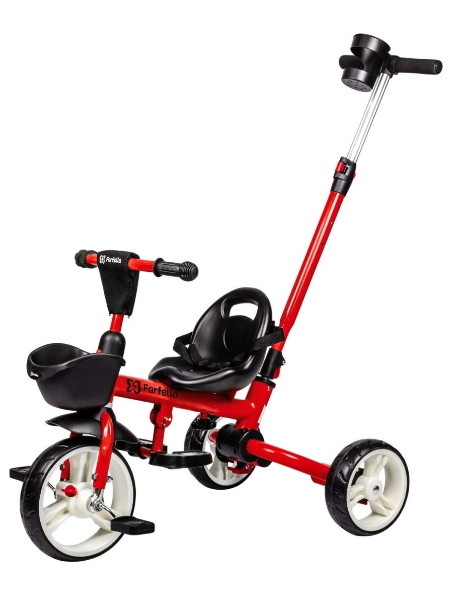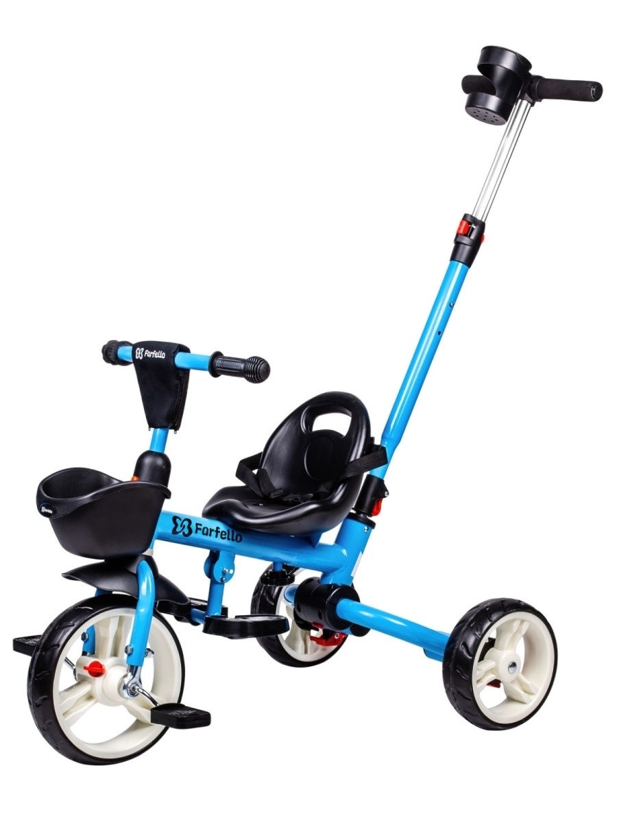 Детский велосипед Farfello S-1601 (Фарфелло) - велосипед с минимальным количеством аксессуаров, но с большим функционалом и надежностью. Родительский контроль за движением осуществляет управляющая ручка в мягком чехле из неопрена,которая регулируется по высоте.Также на ручке располагается подстаканник.На переднем колесе есть отключение педалей от самостоятельного управления.Для малышей, которые не дотягиваются до педалей,предусмотрены складывающиеся подножки.Безопасность обеспечивают двухточечные удерживающие ремни.Надежные PU колеса съемные,устойчивы к проколам и порезам,и поглощают неровности дорожного полотна.На руле расположена багажная корзинка для нужных в дороге мелочей и любимых игрушек.Велосипед прост в уходе и чистке, достаточно регулярно протирать его влажной салфеткой.Велосипед легко перевозить,т.к. складная рама делает эту модель компактной.