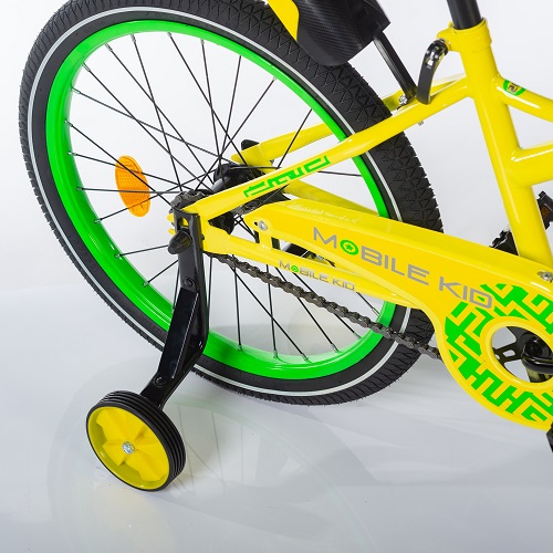 Mobile Kid Slender 20″ (Мобайл кид слендер) - стильный и удобный велосипед для ребенка примерно от 4-5 лет, от 120 см. Его главное преимущество в дополнительных тренировочных колесах, которые позволят ребенку чувствовать себя спокойно во время первых поездок на велосипеде. Велосипед имеет надежные надувные колеса, стальную раму, удобный ручной тормоз. Для более интересной прогулки предусмотрен звоночек, корзинка для воды и игрушек, мягкое дополнительное сидение (багажник). Велосипед удобно управляется и принесет массу положительных эмоций во время прогулки.