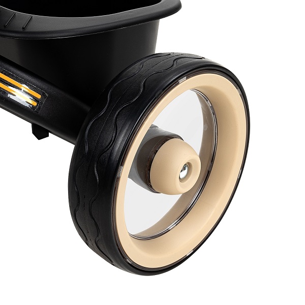 Велосипед имеет стильный внешний вид и выполнен из качественных материалов. Стальная рама выдерживает нагрузку до 22 кг, что позволит использовать велосипед до 5-6 лет. Выдвижная, телескопическая ручка позволит удобно управлять велосипедом. Практичные, непрокалываемые колеса из EVA всегда готовы к прогулкам и просты в обслуживании. Интересным дизайнерским решением являются "прозрачные" колеса. Они добавляют велосипеду определенный стиль и оригинальность.