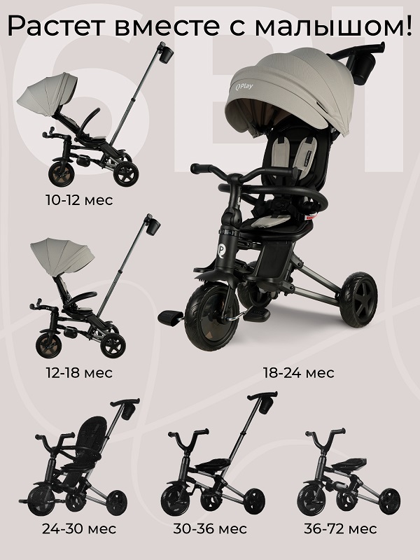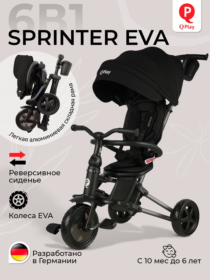 Детский велосипед Qplay Sprinter EVA (Кью плей спринтер ева) - детский трехколесный велосипед-коляска на несдуваемых колесах для ребенка от 10 месяцев до 5 лет.
