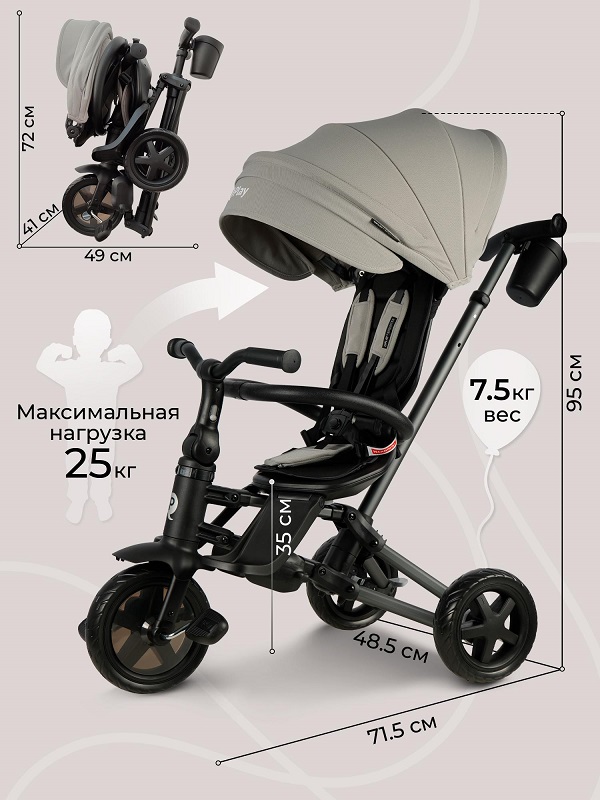 - Целых 6 вариантов использования: велосипед коляска для малышей легко трансформируется в трехколесный велосипед для подросших детей;