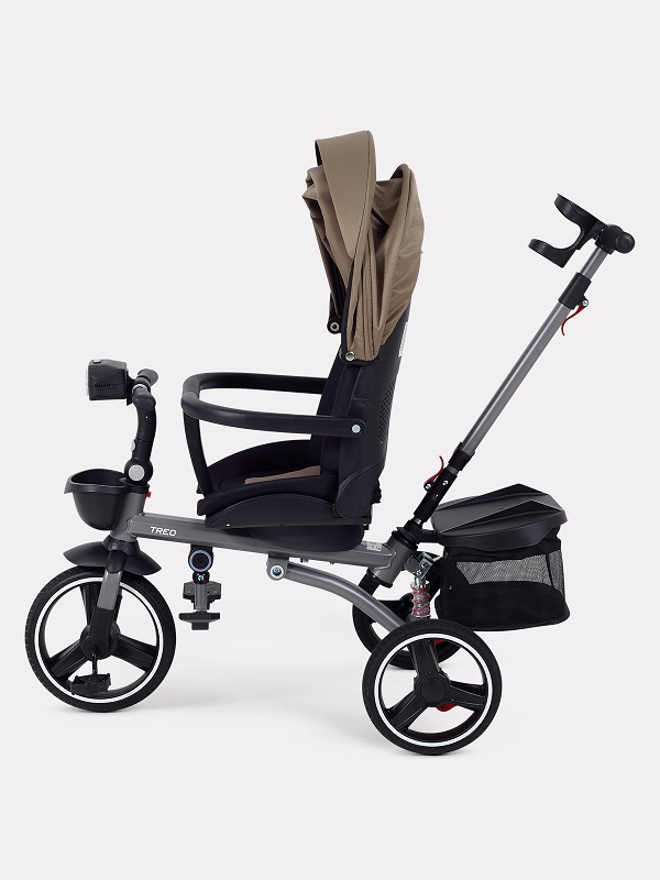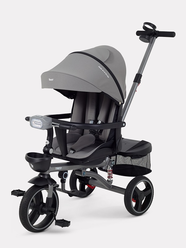 Детский велосипед RANT TREO RB203 (РАНТ ТРЕО) - детский велосипед-коляска для ребенка от 1 годика, с наклоном спинки и поворотным сидением. Прекрасная замена коляски на теплое время года. Такой велосипед сделает прогулки более увлекательными и активными. Преимущество велосипеда в поворотном сидении с хорошим наклоном спинки. В любое время вы сможете не только быстро повернуть ребенка к себе, но и создать все условия для комфортного отдыха и даже сна. При этом в данной модели велосипеда, все как в коляске - бампер ограничитель, ремни безопасности, подножка для малышей которые не достают до педалей, и полноценный капюшон от небольшого дождя или солнца. Когда ребенок подрастет, все дополнительные элементы снимаются, для более облегченного варианта для самостоятельных поездок.