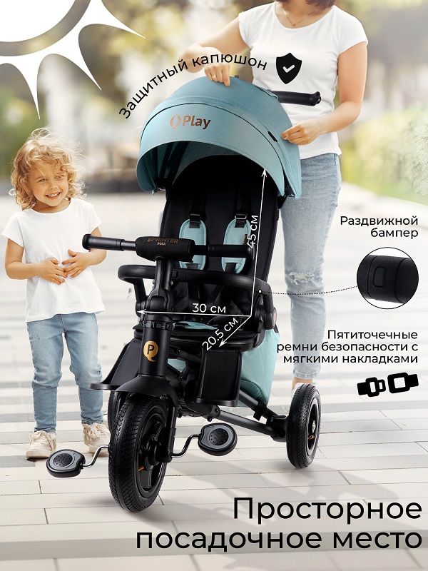 Детский велосипед Qplay SPRINTER MAX (кью плей спринтер макс) - складной детский велосипед для ребенка от 10 месяцев до 5 лет. Качество и функционал этого велосипеда позволят заменить коляску в теплое время года. Вы сможете сделать летние прогулки более увлекательными, активными, яркими, при этом ребенок будет в удобном и безопасном месте, а вам будет удобно экплутировать велосипед, путешествовать с ним и брать в поездке.