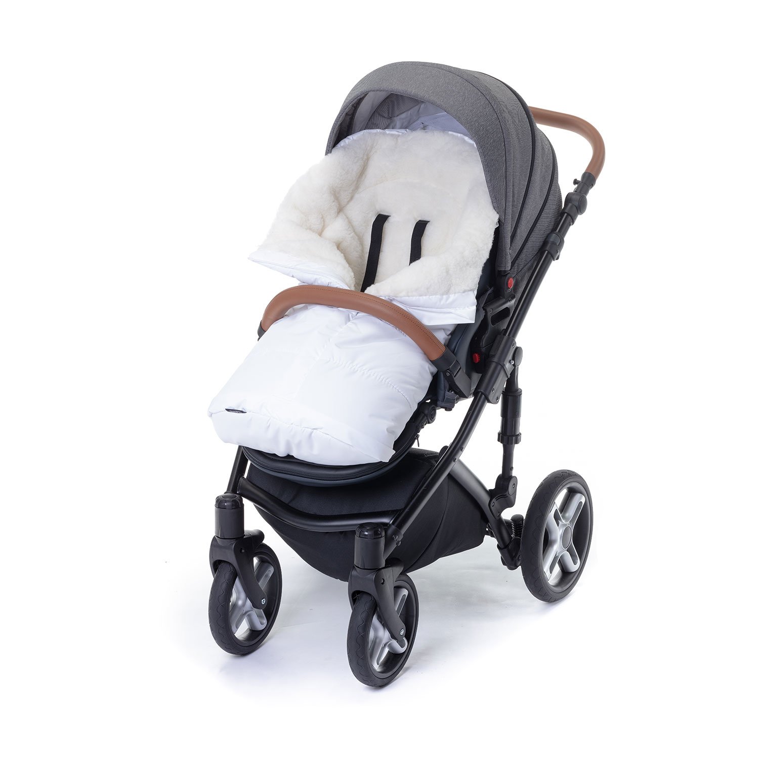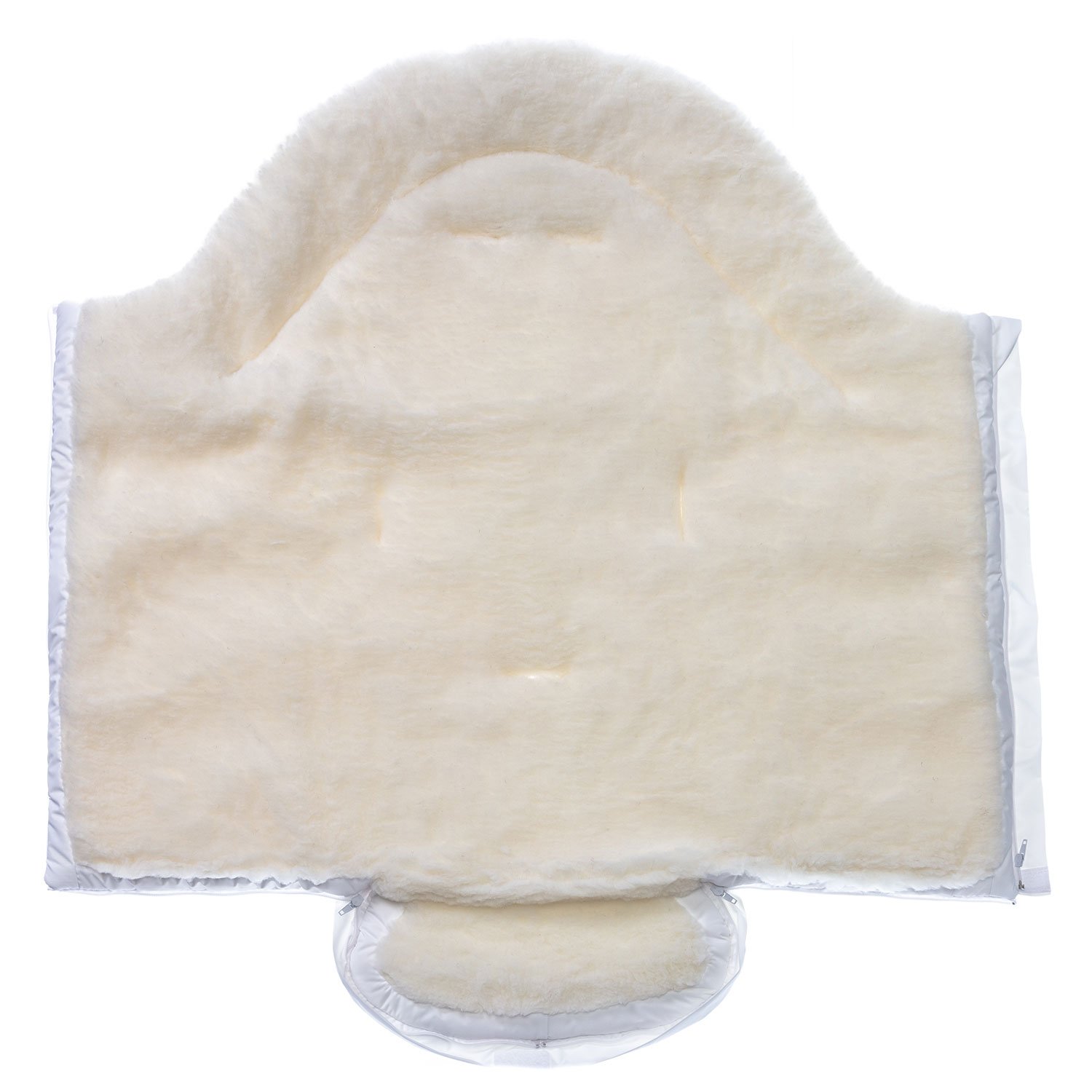 Лицевая часть изделия выполнена из мембранной PU-ткани, обладающей односторонней проницаемостью. Благодаря сочетанию шерсти и ткани с мембранной пленкой при продолжительных прогулках внутри конверта поддерживается оптимальный температурный режим. Водоотталкивающие свойства PU-материала облегчают уход, позволяя поверхности дольше оставаться чистой. Между чехлом и меховой основой находится мягкая прослойка из синтепона.