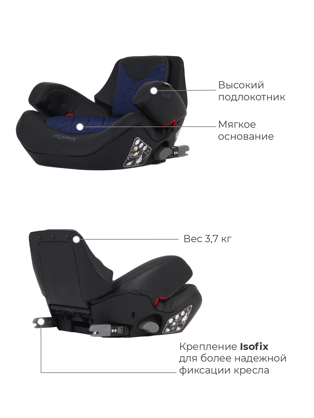 Бустер оснащен системой изофикс и надежно фиксируется в машине. Но, если данной системы у вас нет, то сидение можно фиксировать обычным штатным ремнем безопасности. Кресло выполнено из ударопрочного пластика и приятной обивки, которую легко снять и постирать в стиральной машинке при 30 градусах. Большим преимуществом данной модели является регулируемая спинка, которая обеспечит дополнительный комфорт во время поездки. Большие мягкие подлокотники дополнительно защитят ребенка при боковом ударе.