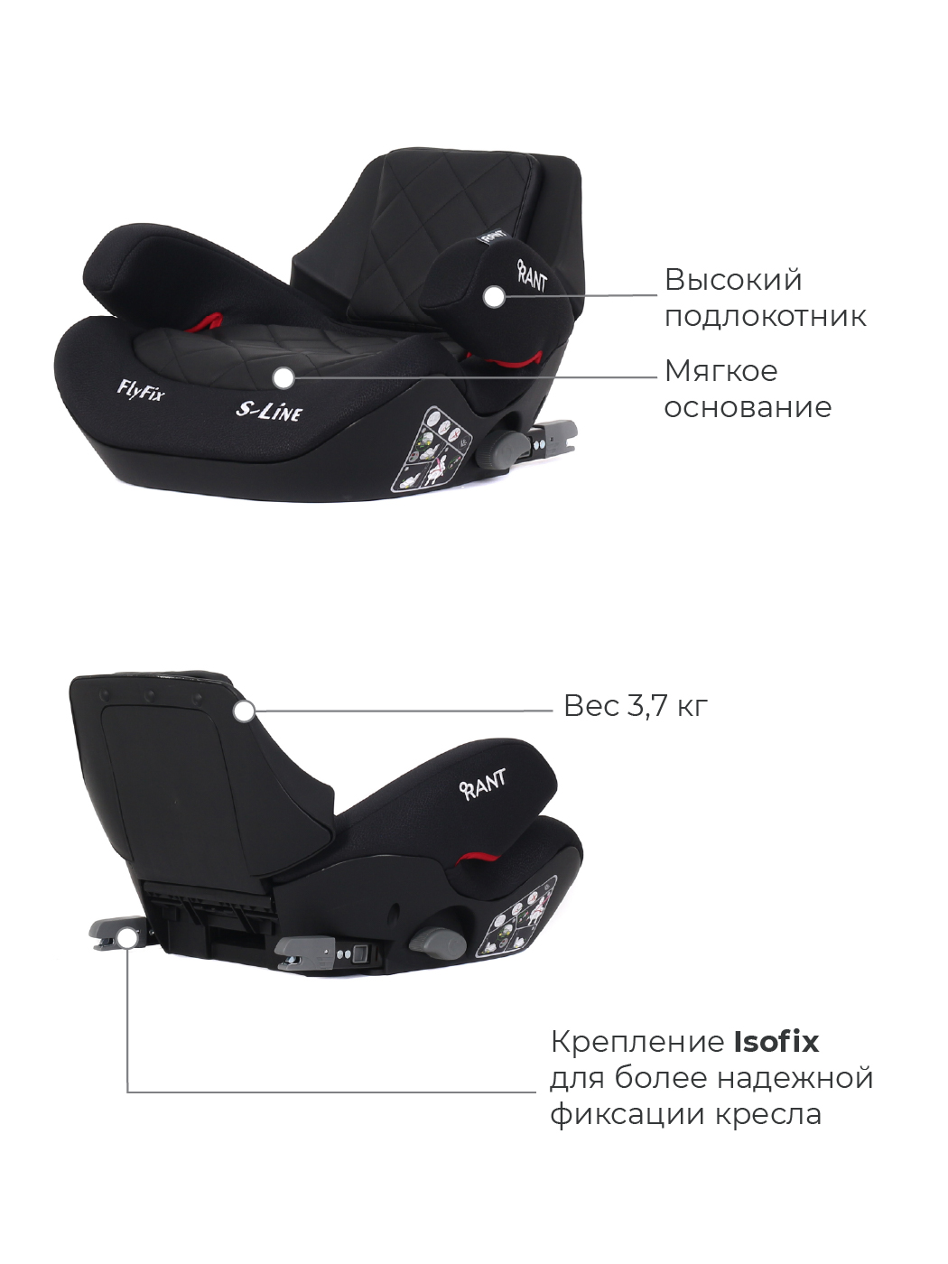 Автокресло-бустер Rant Flyfix (Рант флайфикс) - надежное и сертифицированное автомобильное сидение для детей от 4 до 12 лет. Бустер оснащен системой изофикс и надежно фиксируется в машине. Но, если данной системы у вас нет, то сидение можно фиксировать обычным штатным ремнем безопасности. Кресло выполнено из ударопрочного пластика и приятной обивки, которую легко снять и постирать в стиральной машинке при 30 градусах. Большим преимуществом данной модели является регулируемая спинка, которая обеспечит дополнительный комфорт во время поездки. Большие мягкие подлокотники дополнительно защитят ребенка при боковом ударе.