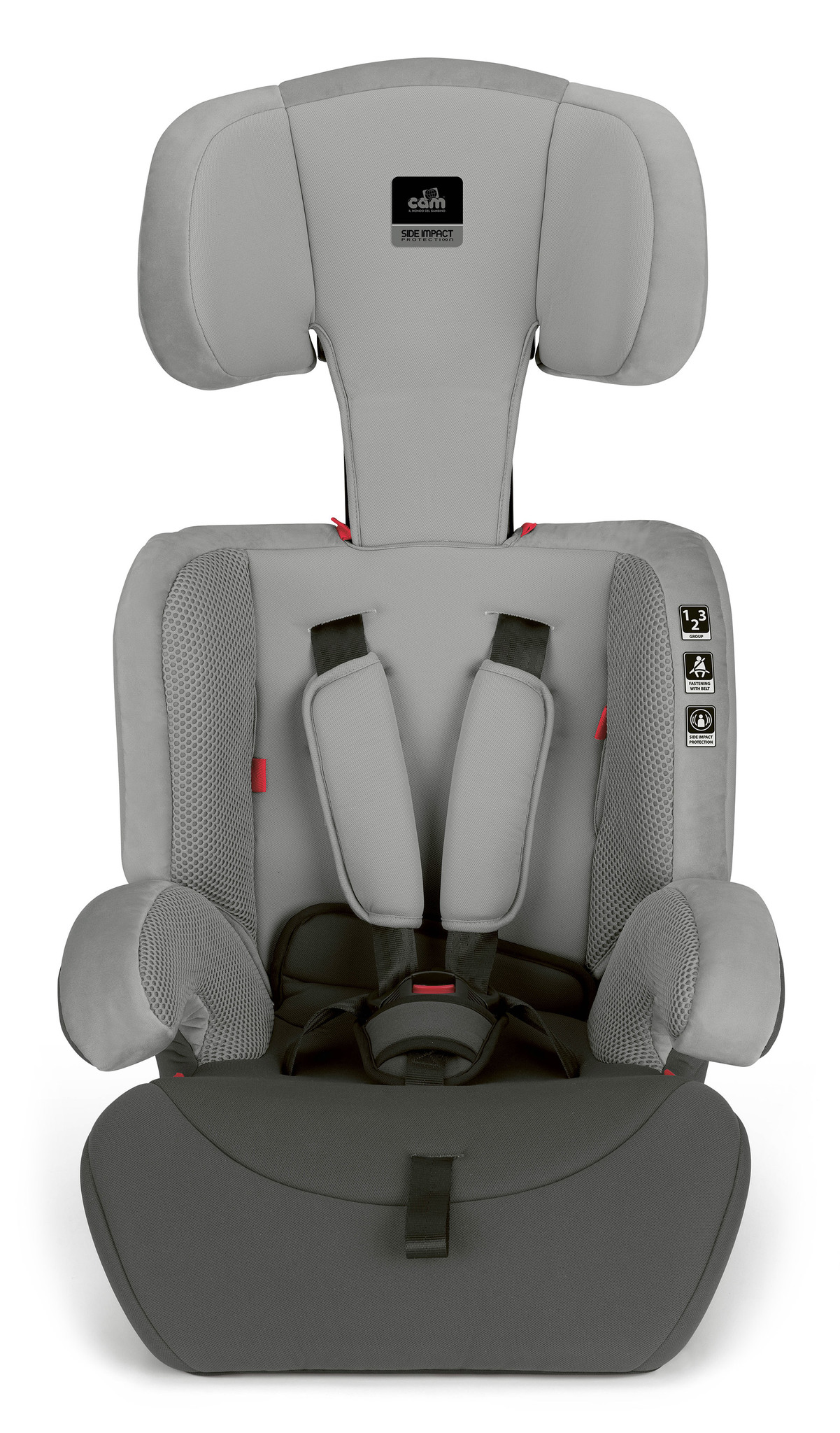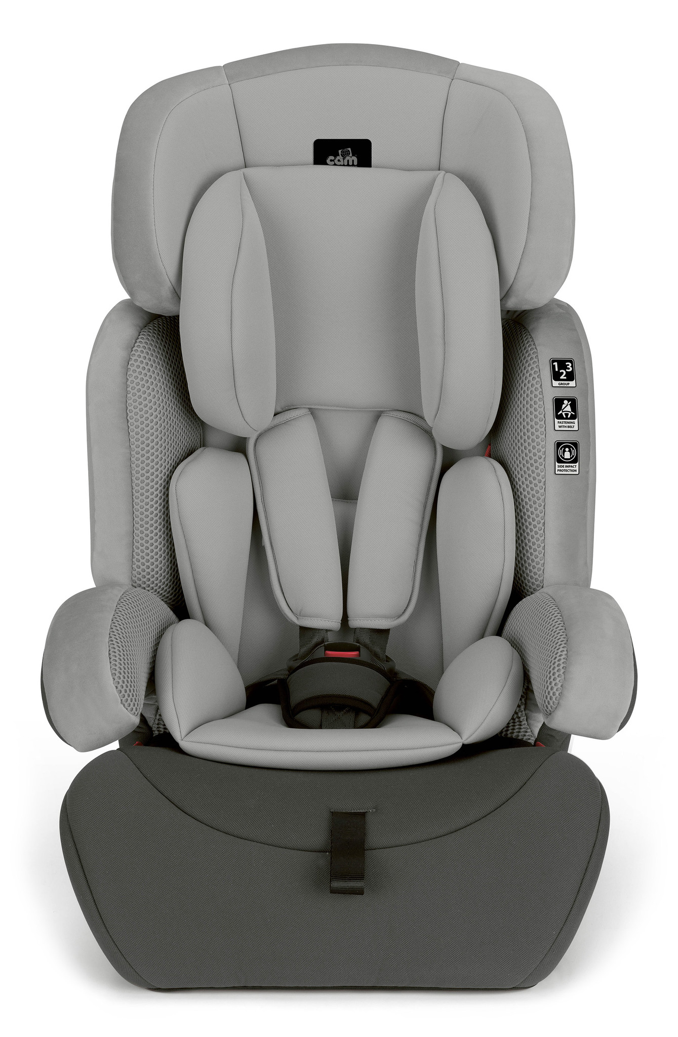 Автокресло Cam Combo (Кам Комбо) - комфортное и безопасное детское автомобильное сидение в машину для ребенка от 9 месяцев до 12 лет. Главным преимуществом данной модели является небольшой вес и возможность кресла расти вместе с ребенком. По мере роста ребенка меняются внутренние размеры сидения (убирается дополнительный матрасик-вкладыш) и высота подголовника. В дальнейшем спинку можно отстегнуть, а сидение использовать как бустер.