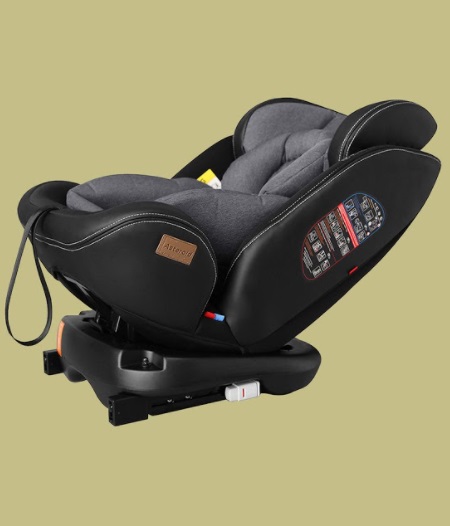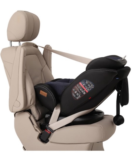 Кресло установлено на несъемной базе и имеет поворотный на 360 градусов механизм. Для удобства посадки и высадки ребенка из машины кресло будет удобно разворачивать к двери, а во время движения ставить по ходу или против хода движения в зависимости от возраста ребенка. Угол наклона кресла меняется с помощью удобной клавиши на передней части кресла, что позволит регулировать наклон кресла одной рукой, даже с переднего сидения. Вся обивка приятная на ощупь, гипоаллергенная и съемная.