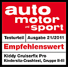Каркасkiddy cruiserfix proизготовлен из высокопрочного автомобильного пластика и энергоемкого материала EPP . Ребенок фиксируется в автокресле с помощью штатных ремней безопасности. Инновационная система KSA-2 (Kiddy Shock Absorber) на 25-30 % уменьшает фронтальный нагрузки при лобовом столкновении.