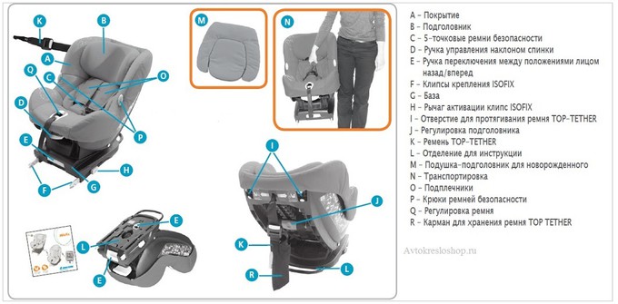 - фиксируется в автомобиле при помощи системы isofix и якороного ремня