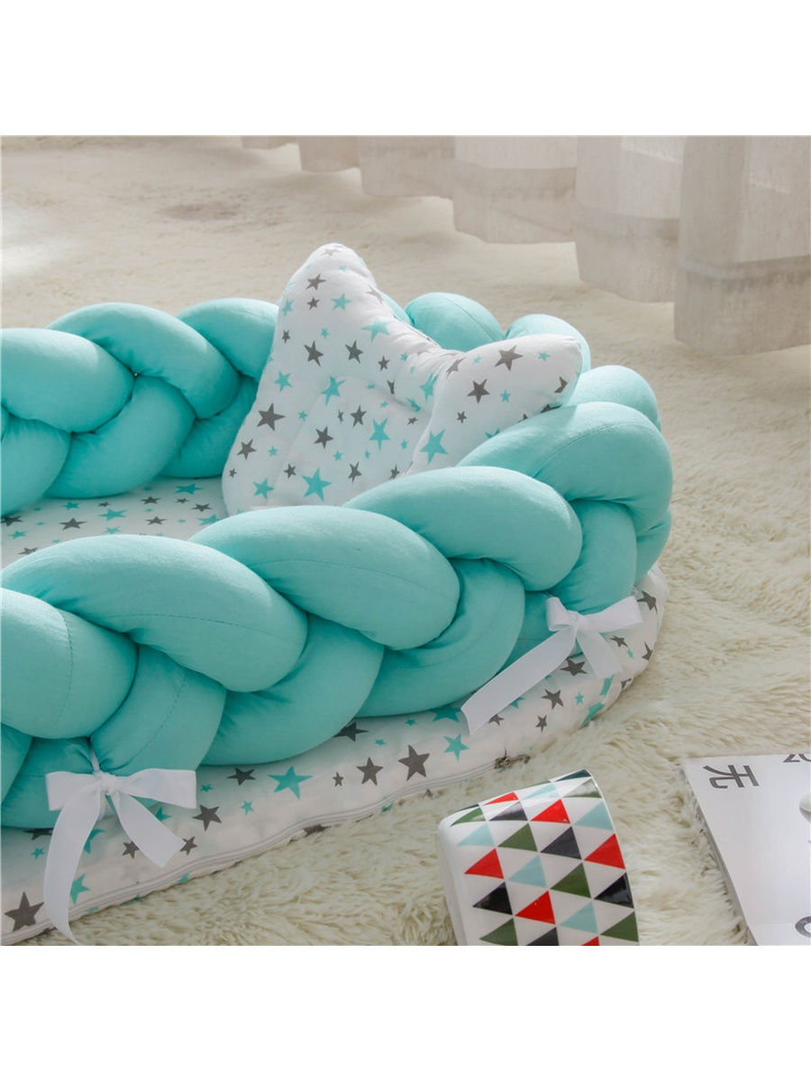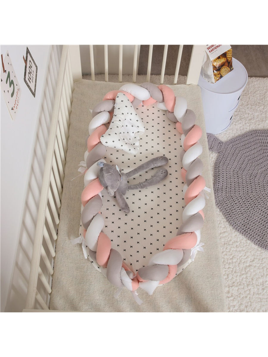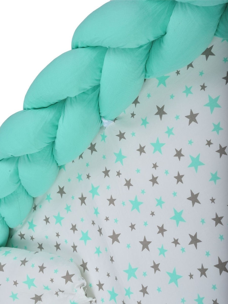 Бортик выполнен из мягкого хлопкового трикотажа, который подходит для новорожденных и не вызывает аллергии, а также защитит ребенка от ударов и сквозняков.