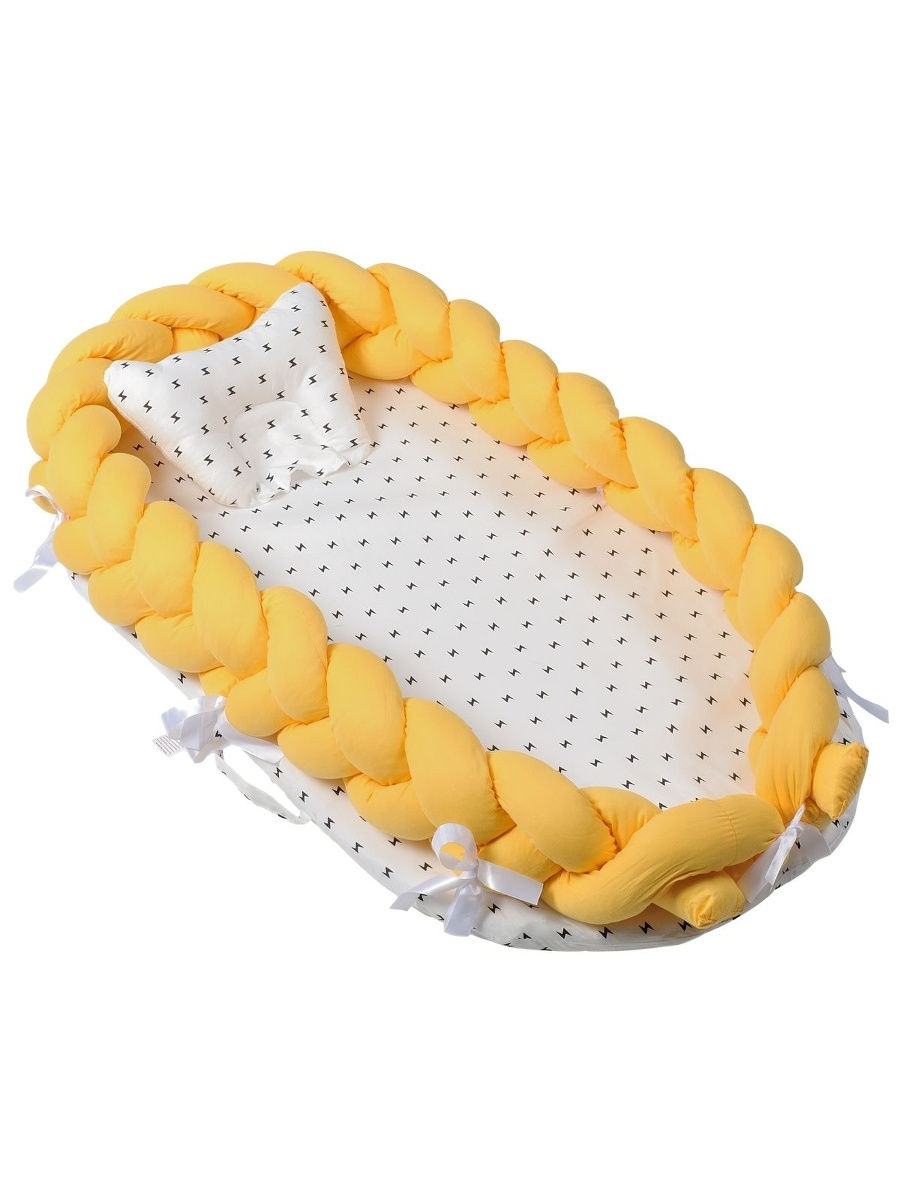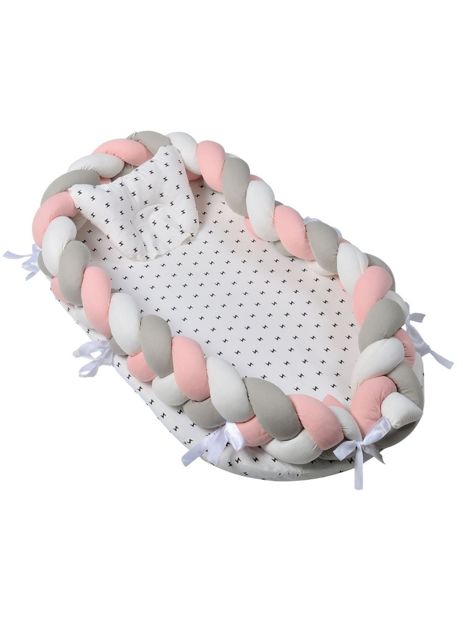 Детское уютное гнездышко-кокон для лучших сновидений малыша. Модель состоит из бортика объемной вязки "коса", матраса и подушки.