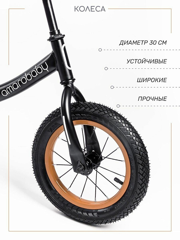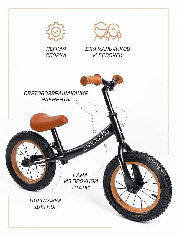 Двухколесный беговел AmaroBaby Road Racer (амаробеби роад рейсер) - (может быть известен Вам как: шаговел, велобег, ранбайк, велокат) для малышей старше 3 лет поддерживает всестороннее развитие вашего ребенка, обеспечивая ему долгие часы веселья на свежем воздухе, станет любимым развлечением для ребенка, с пользой для его здоровья и развития. Беговел - это детский велосипед без педалей, который научит ребенка держать равновесие и укрепит ножки и ручки, что в дальнейшем поможет освоить двухколесный велосипед без опорных колес, подойдёт как для девочек, так и для мальчиков. Простая и надёжная конструкция изделия гарантирует комфорт и безопасность ребёнка во время езды. Наш лёгкий беговел имеет раму из стали с максимальной нагрузкой до 30 кг. Надувные колеса размером 12" обеспечат комфортную поездку и хорошую проходимость. Эргономичное сидение позволит ребенку сидеть комфортно продолжительное время.