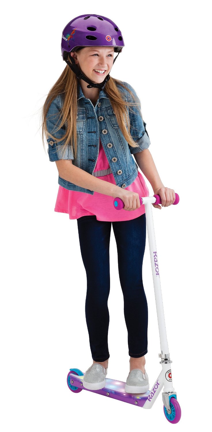 Детский двухколесный самокат Razor Party Pop (рейзор пати поп) - супер яркий самокат для ребенка от 6 лет. 12 разноцветных огоньков размещенных на платформе превратят катание в интересный и веселый праздник. Этот самокат станет любимым транспортом ребенка и его друзей. А как красиво будет смотреться самокат в темное время суток! Идеальный подарок на любой праздник.