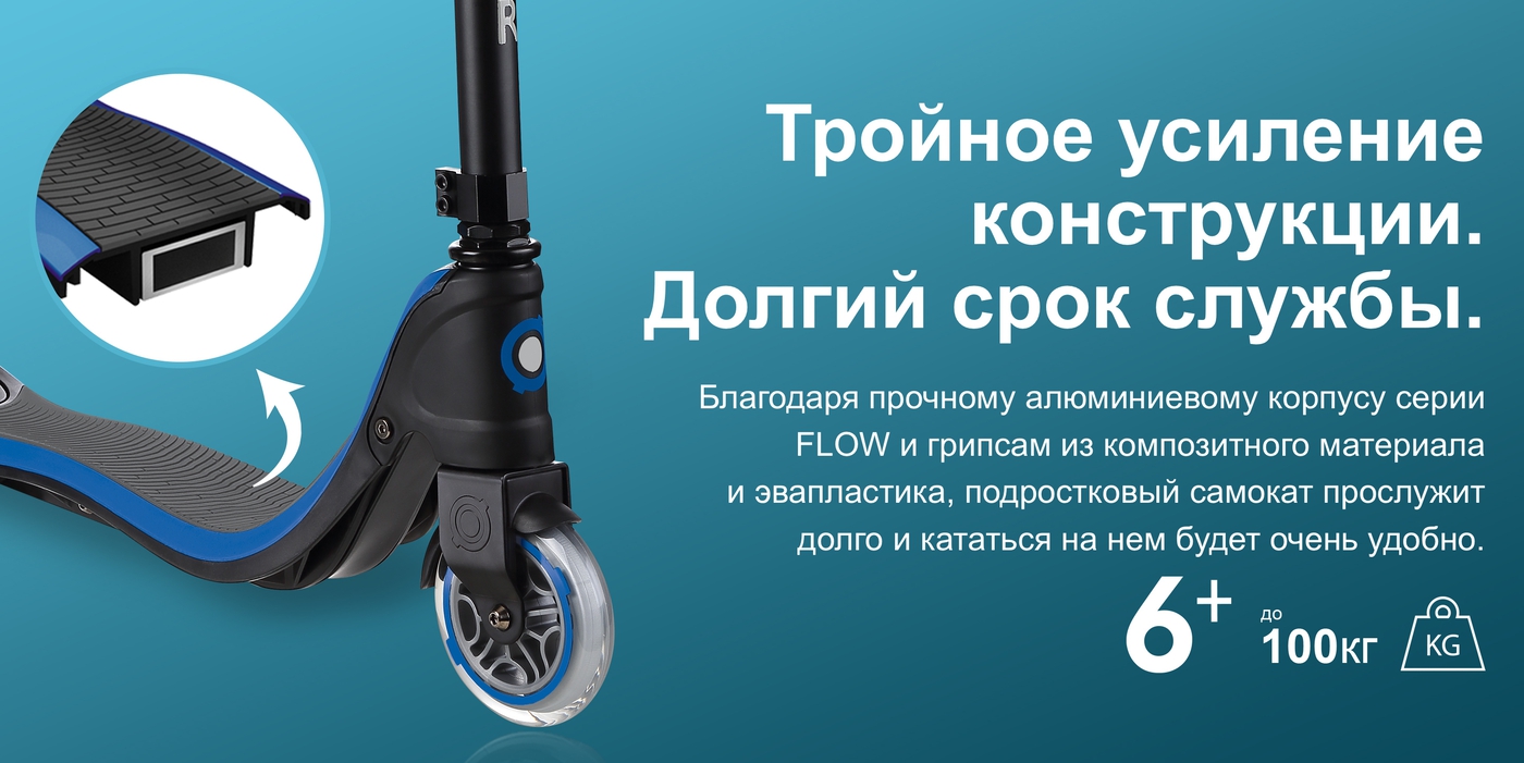 Купить Globber Flow 125 (Глоббер Флоу 125) в нашем магазине очень просто — Вам достаточно оформить заказ онлайн на сайте или по телефону +8(925)266-83-06. Мы доставим товар в самое короткое время по Москве и Подмосковью (бесплатно до 10 км за МКАД). Так же отправляем в любой город России, в Армению, в Киргизию, в Крым, в республику Беларусь с помощью транспортной компании.