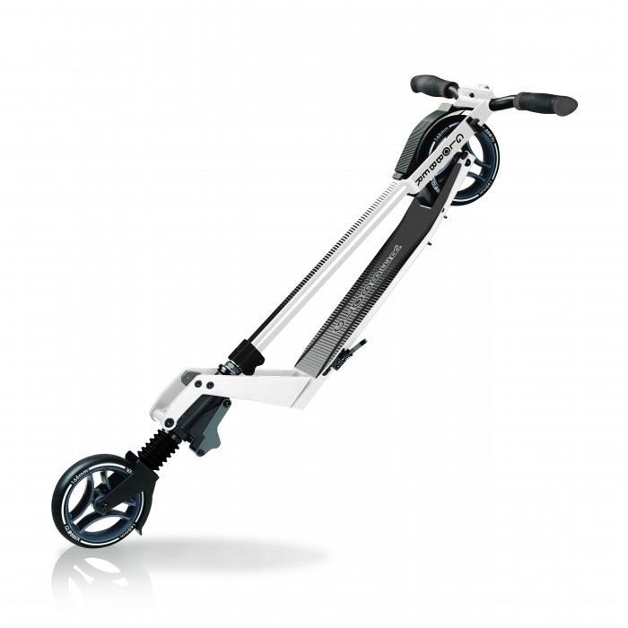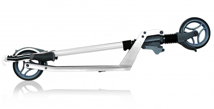 - Оснащен запатентованной системой складывания 1 second kick & fold collapsing. В сложенном состоянии легко катить самокат за собой.