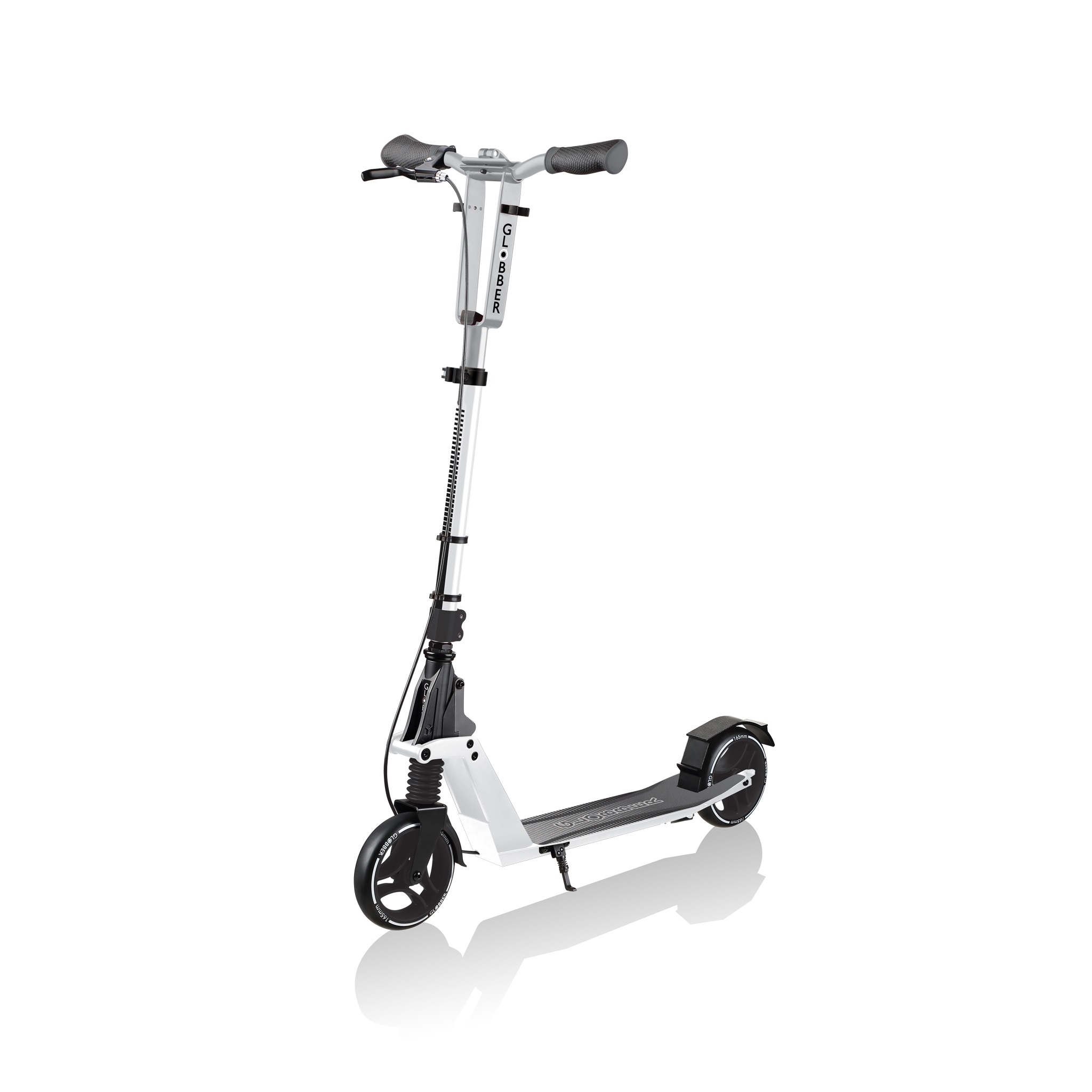 Двухколесный самокат Globber One K 165 BR (Глоббер Он К 165 бр) - идеальный самокат для поездок по городу, который подходит подросткам и взрослым. Самокат быстро разгоняется, а заниженная дека помогает экономить силы во время катания. Он оснащен уникальной системой складывания 1 second kick & fold collapsing для удобной и компактной транспортировки. Есть алюминиевый передний ручной и задний ножной тормоза, а также передний амортизатор. Модель оснащена широким изогнутым Т-образным рулем с эргономичными складными ручками и антивибрационным зажимом. Алюминиевая дека имеет антискользящее покрытие и выдерживает до 100 кг.