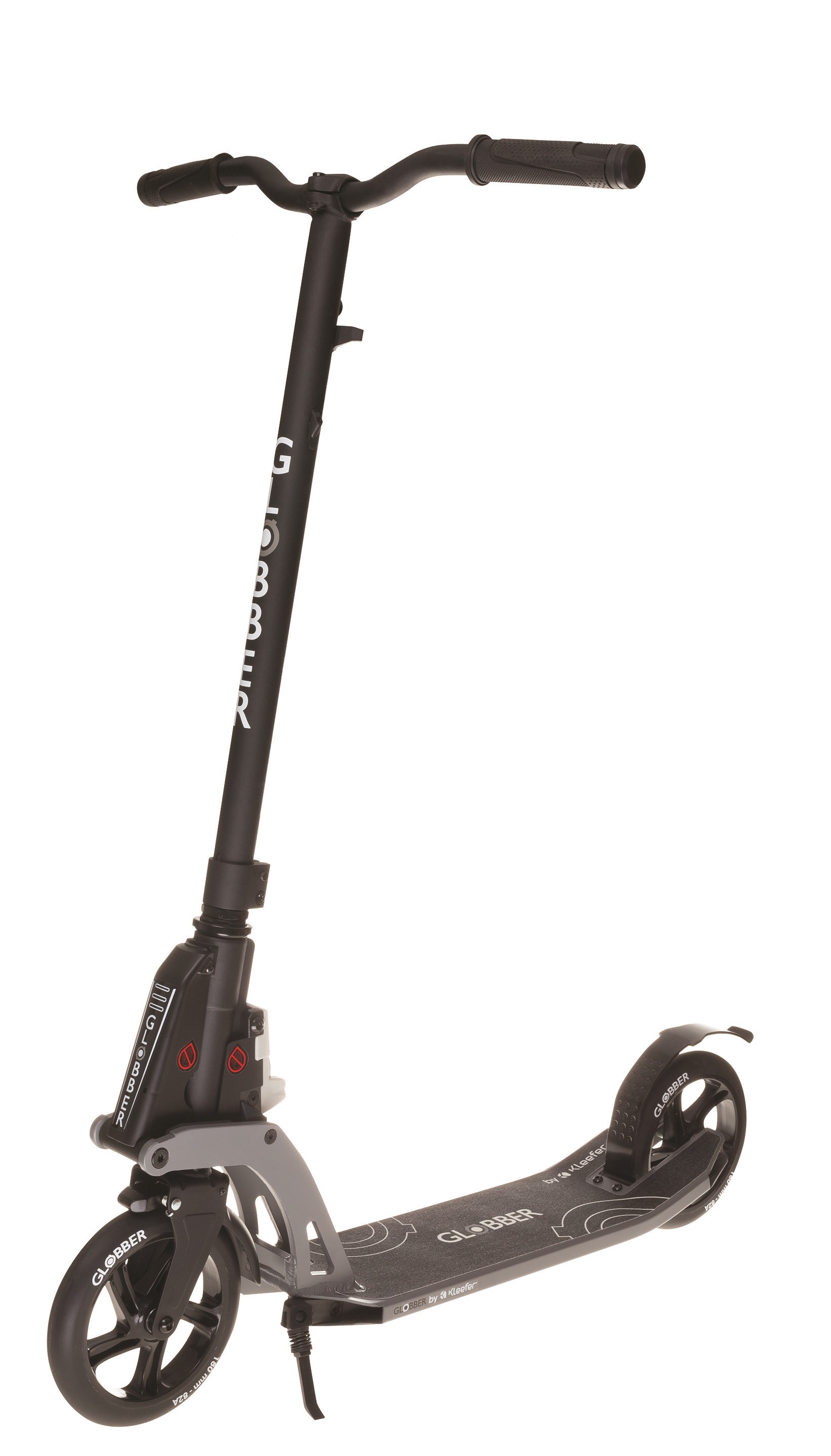 Самокат Globber ОNE K180 (Глоббер Он к180) - надежный самокат для взрослых с максимальной нагрузкой 100 кг, оснащен быстрой и простой системой складывания Kleefer и нерегулируемым рулем.