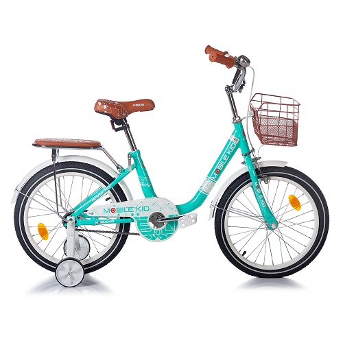 Велосипед Mobile Kid Genta 18″ (Мобайл кид джента) - удобный и практичный детский велосипед с дополнительными тренировочными колесиками. Такой велосипед поможет ребенку освоить навыки катания на двухколесном транспорте, научит держать равновесие. Дополнительно велосипед оснащен звоночком, корзинкой для игрушек и мягким багажником.