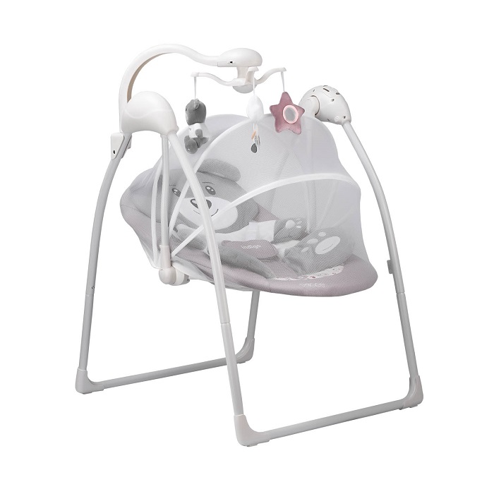 Качели имеют простую и удобную сборку. Люлька-шезлонг с приятной к телу ткани и мягким вкладышем в форме мишки прекрасно поддержит неокрепшее тело и шею ребенка, обеспечит комфорт и безопасность. Съемный музыкальный мобиль оснащен тремя красивыми и качественными игрушками. Малышу будет приятно рассматривать игрушки, пытаться дотянуться до них. Приятная музыка и звуки природы способствуют развитию малыша. Так же качели оснащены белым шумом, который, как уже было доказано, помогает ребенку быстрее успокоиться и уснуть.