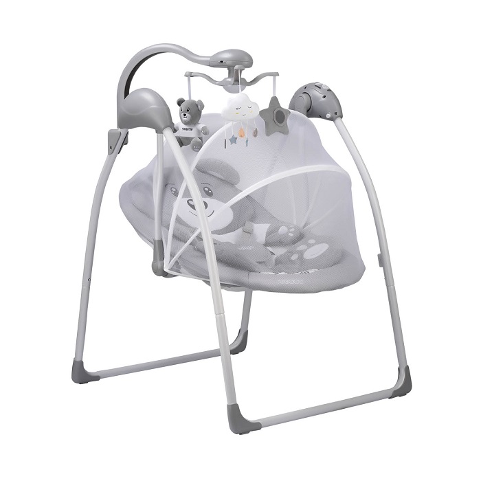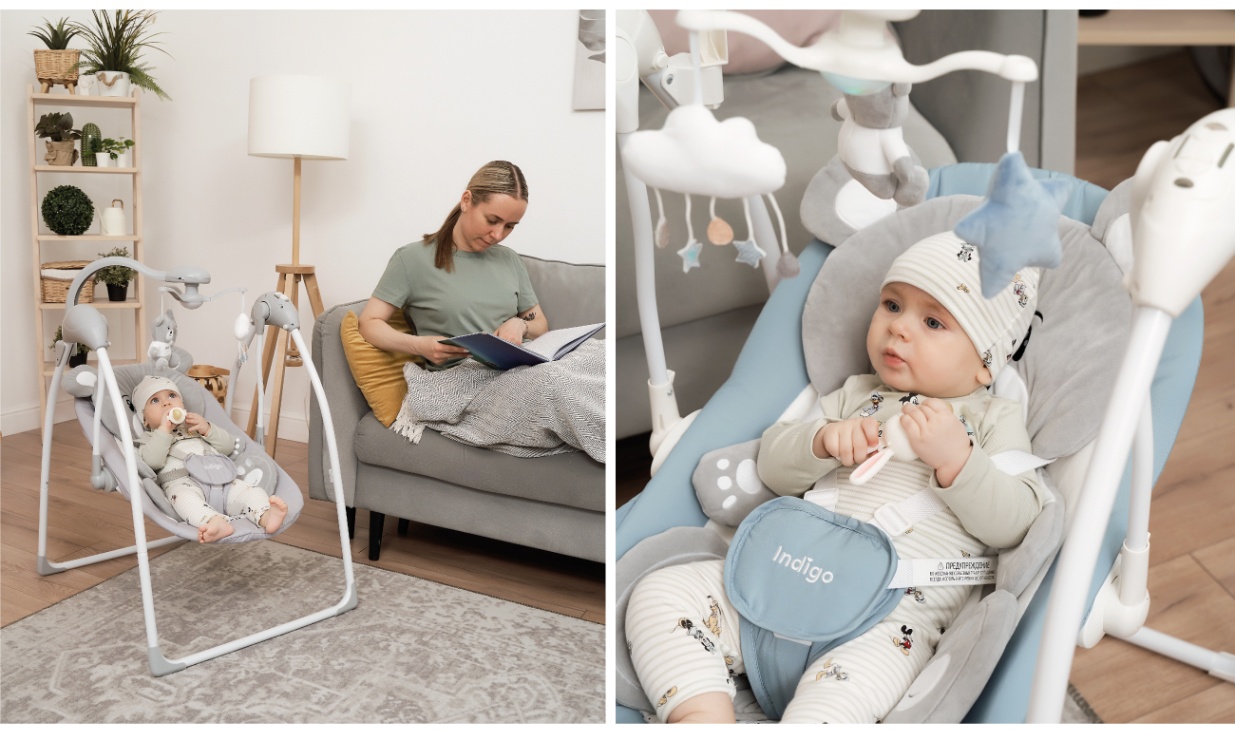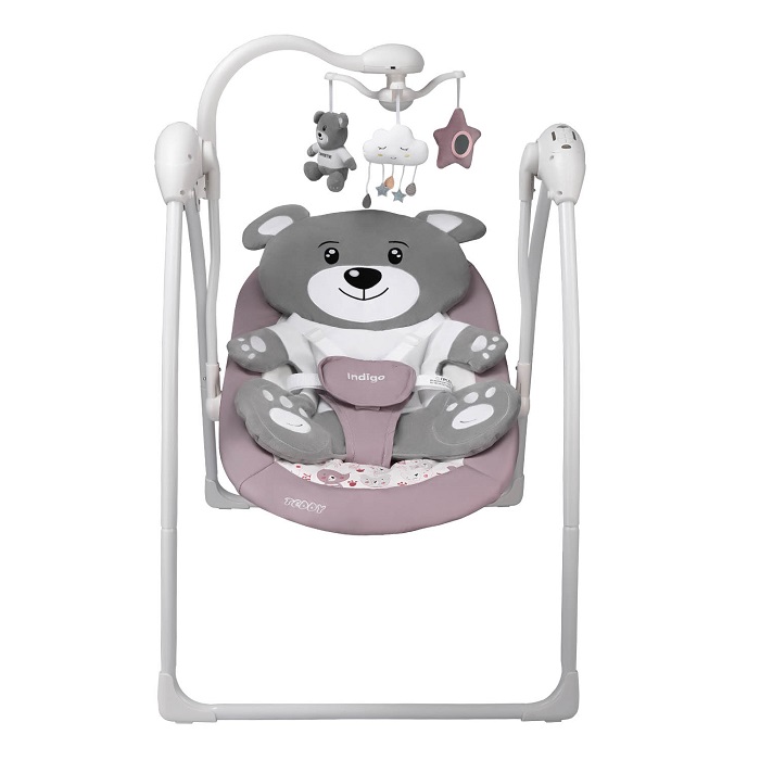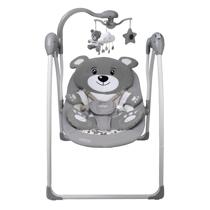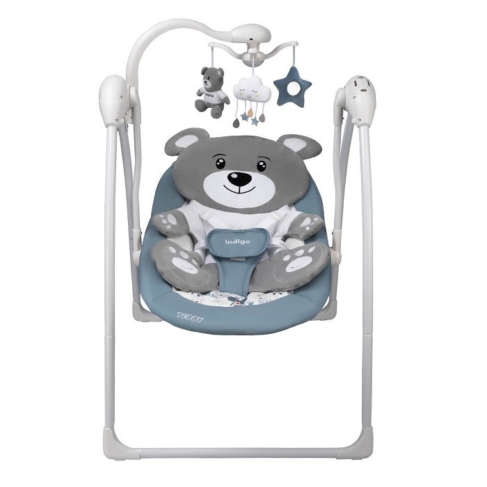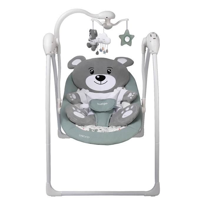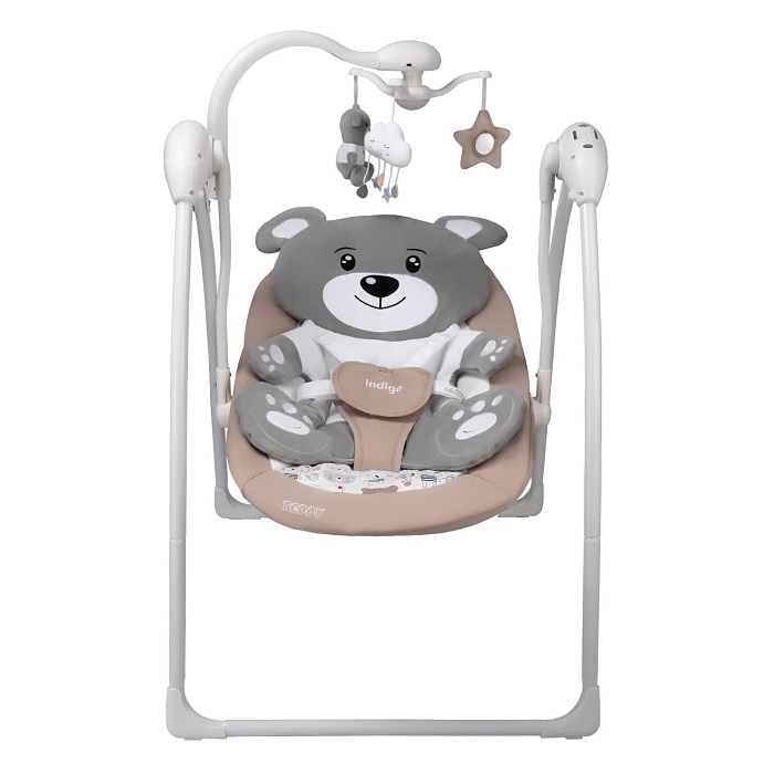 Электрокачели Indigo Teddy (Индиго Тедди) - cовременные, многофункциональные качели для новорожденного ребенка с электронным качанием, белым шумом и компактным сложением.