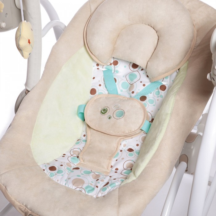 Безопасность ребенка в качелях обеспечивается за счет устойчивой конструкции рамы, 5-ти точечных ремней безопасности и качественных материалов.
