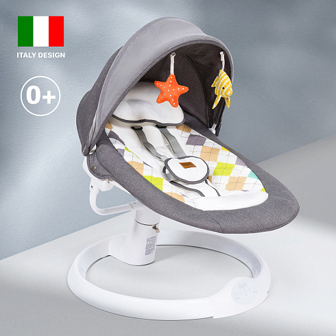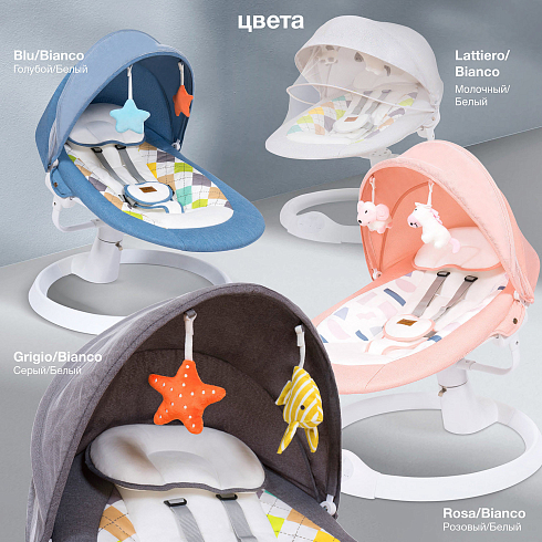 Электрокачели Nuovita Attento А1 (Нуовита Аттенто А1) - "умные" качели, которые подарят ребенку спокойствие без родительских рук. Этот очень легкий и компактный девайс обеспечит ребенку плавное и нежное покачивание из стороны в сторону под любимую музыку. Скорость качания регулируется, что позволит успокоить и настроить ребенка на сон или просто немного отвлечь, пока родители заняты. Небольшие игрушки на капюшоне развивают внимание и тактильные чувства. Ложе для ребенка имеет идеальный наклон в 155 градусов, качественную обивку и мягкие подушечки - все это позволит ребенку занять физиологически правильное положение и наслаждаться максимальным комфортом. База качелей имеет выверенные пропорции, которые обеспечат ей устойчивость и надежность. В качельках малыш надежно фиксируется ремешками.