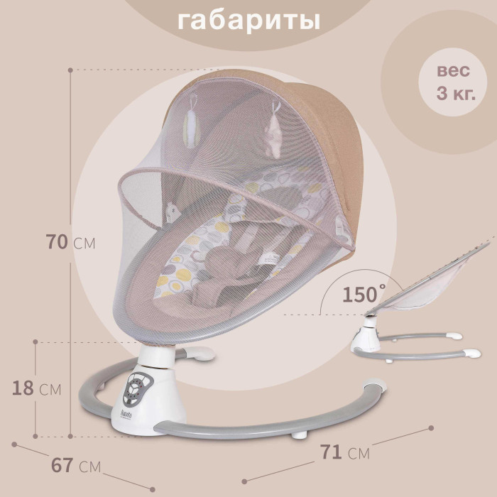 • Функция «умное укачивание» запустит работу качелей, если ребенок начнет шевелиться.
