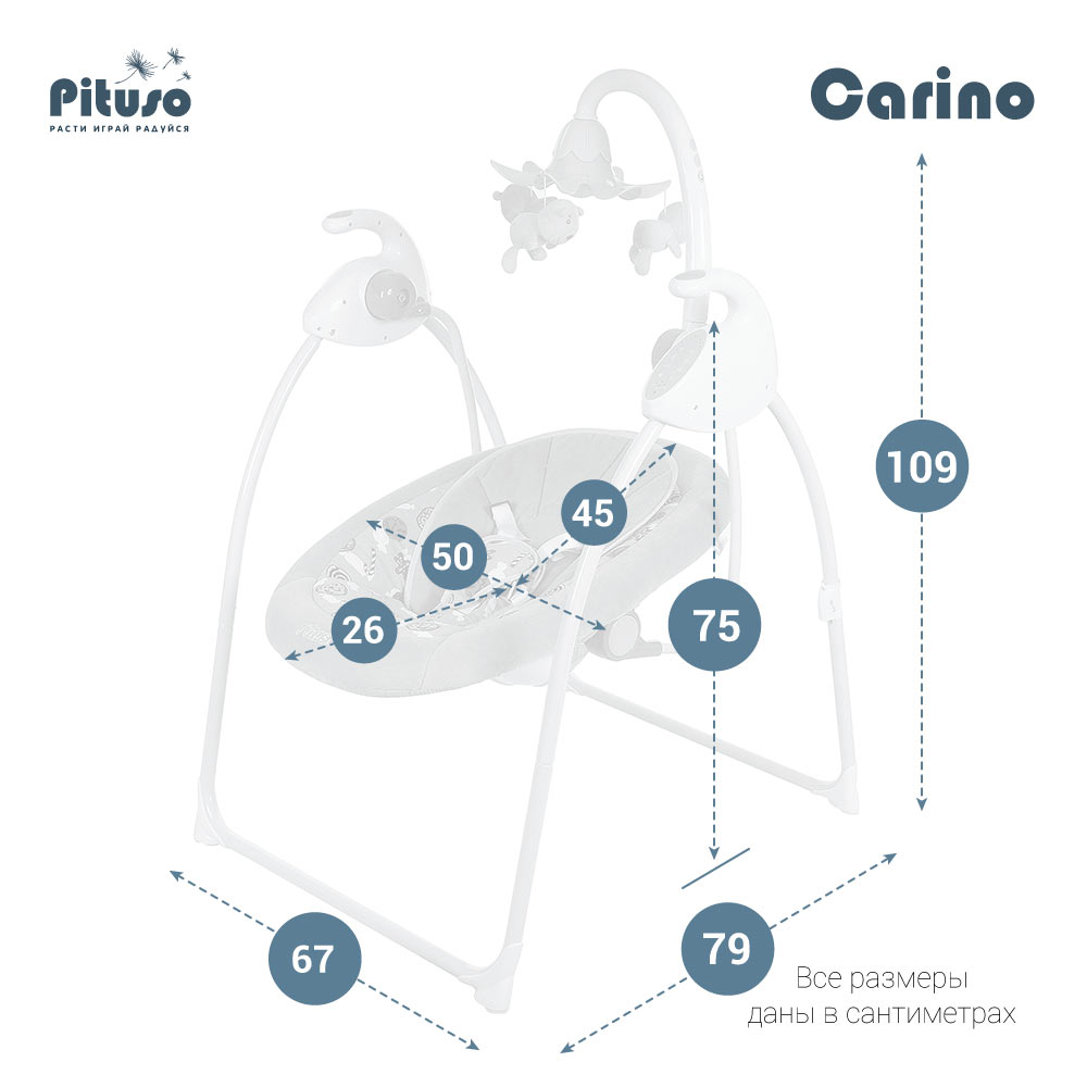 Электрокачели PITUSO CARINO (Питусо Карино) - предназначены для укачивания детей раннего возраста, подходят для малышей с рождения. Оснащены тихим механизмом, который плавно и спокойно укачивает, а также предусмотрена успокаивающая музыка.